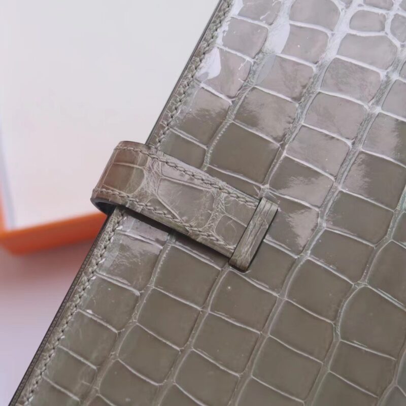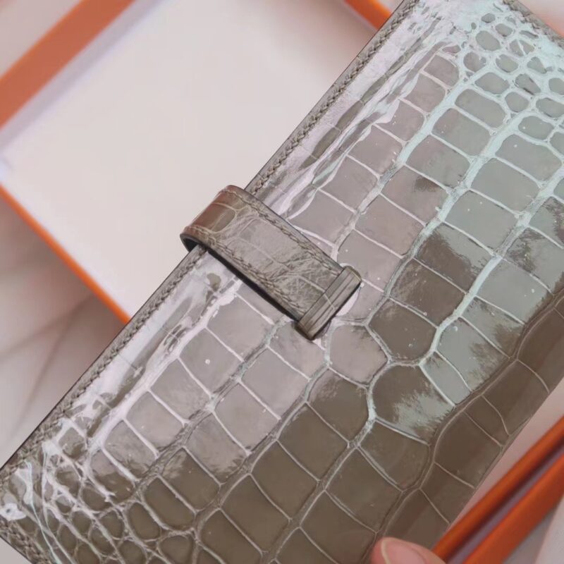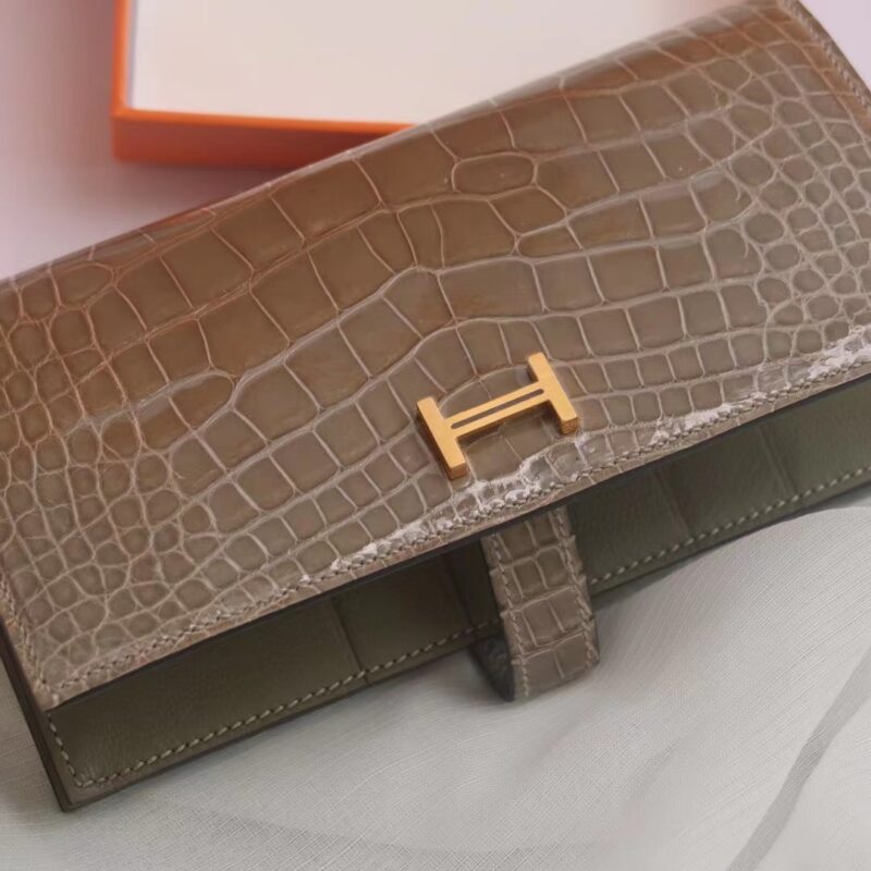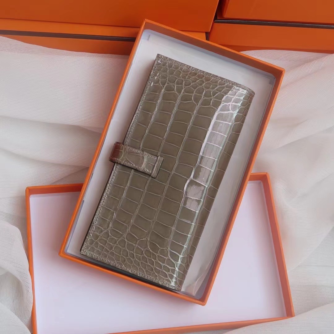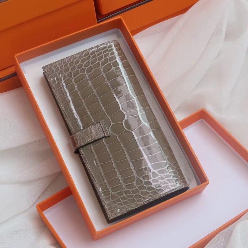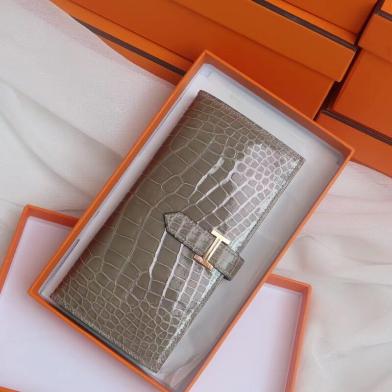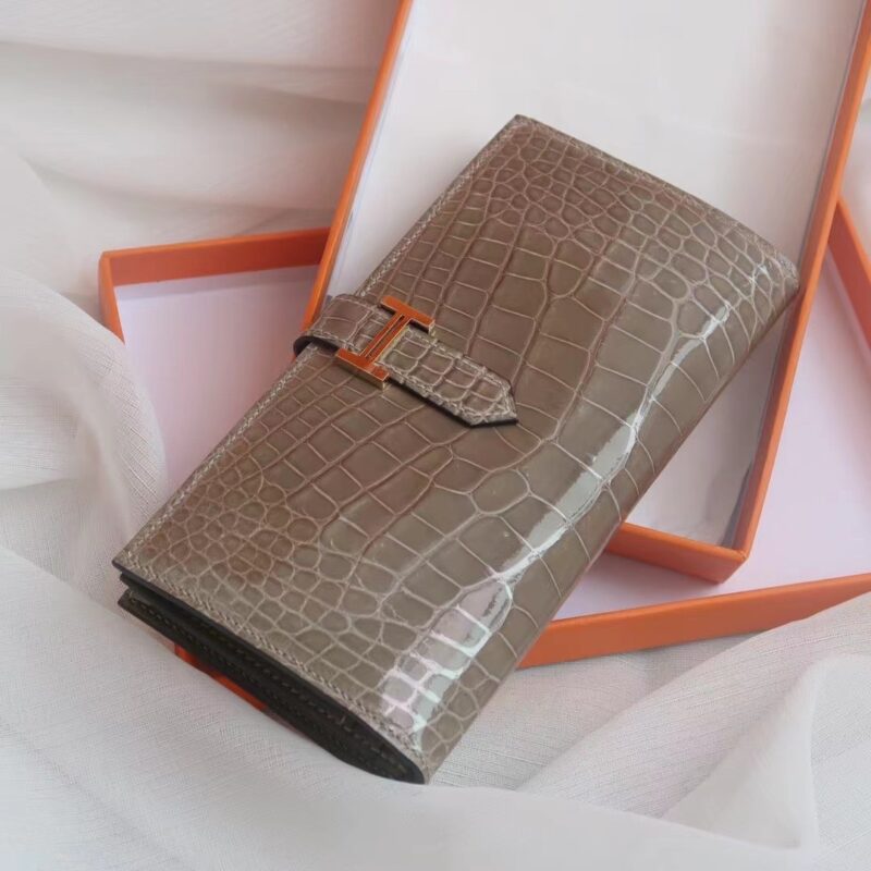 Hermes Bearn Long Wallet Gris Tourterelle in Crocodile