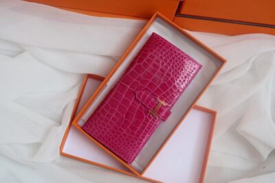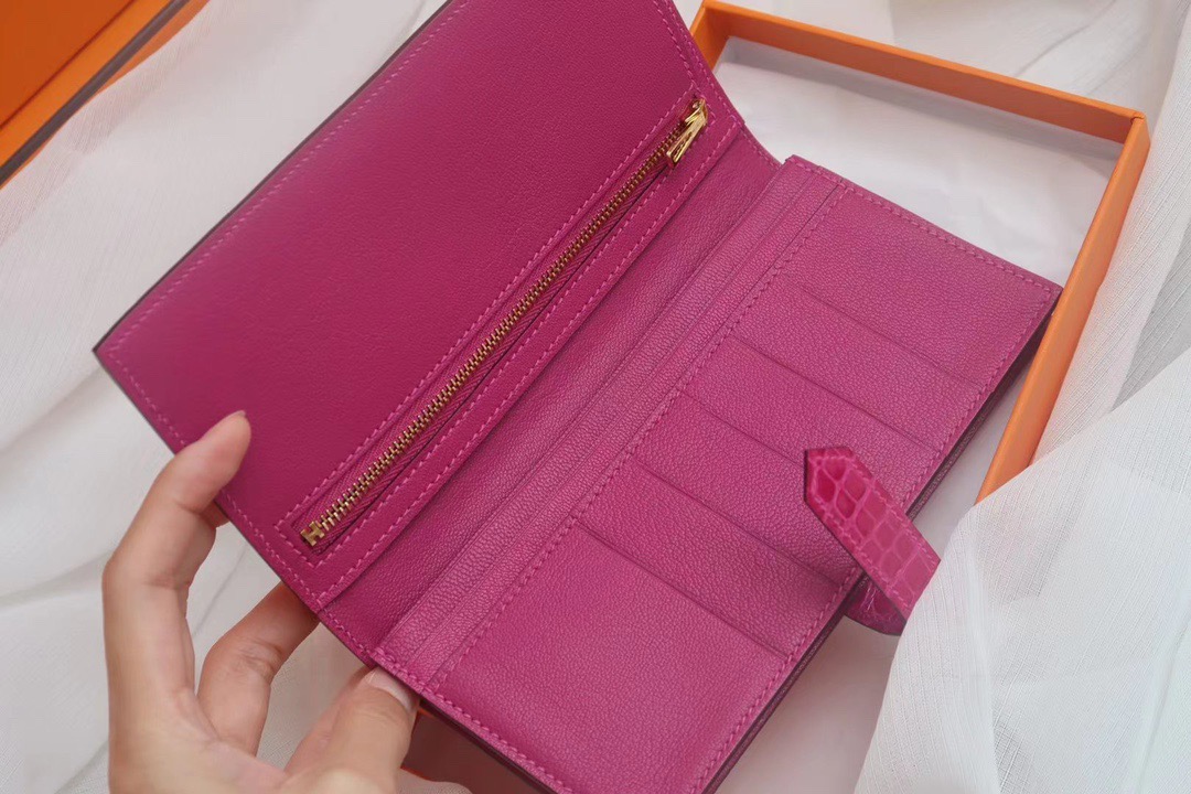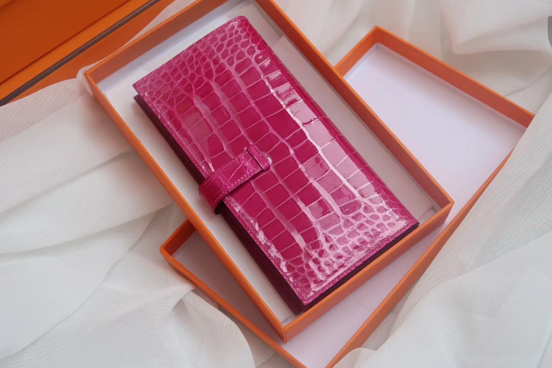 Hermes Bearn Wallet Rose Tyren in Crocodile