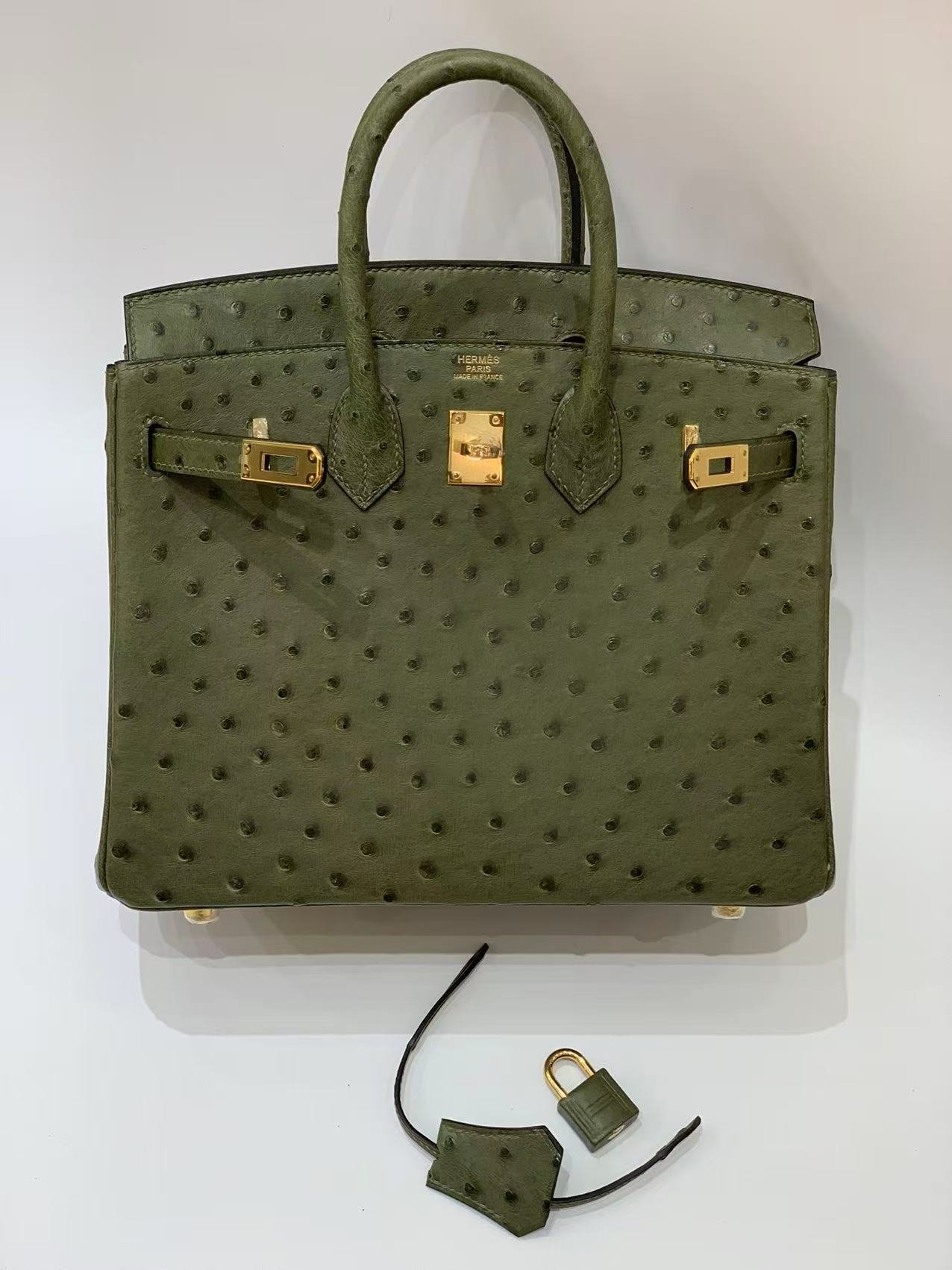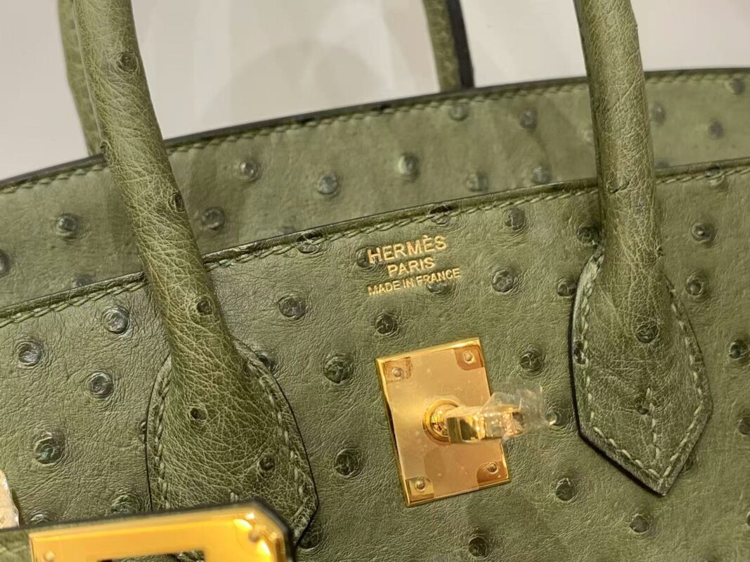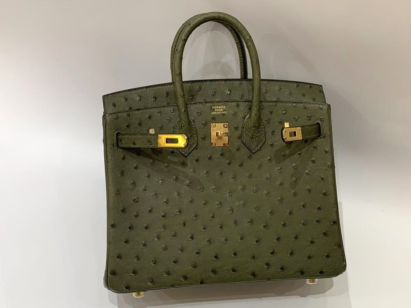 hermes birkin 25 ostrich leather olive 🫒 color gold hardware authentic quality