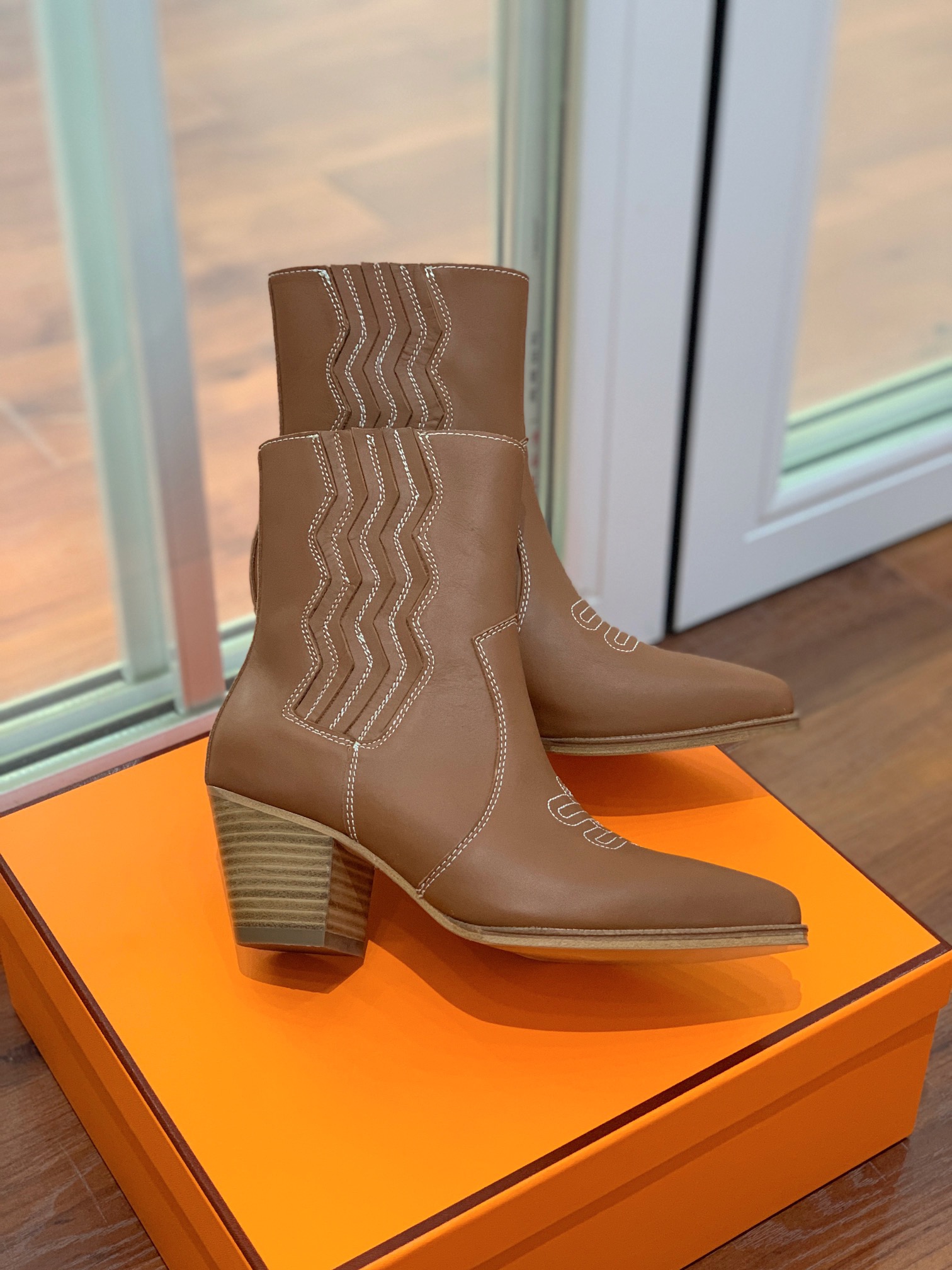 New short boots for autumn and winter. Simple and atmospheric style. Fabric Calfskin leather. Leather lining, double leather outsole. Heel height is 7cm. Sizes: 35-42 (40, 41, 42 customized)
