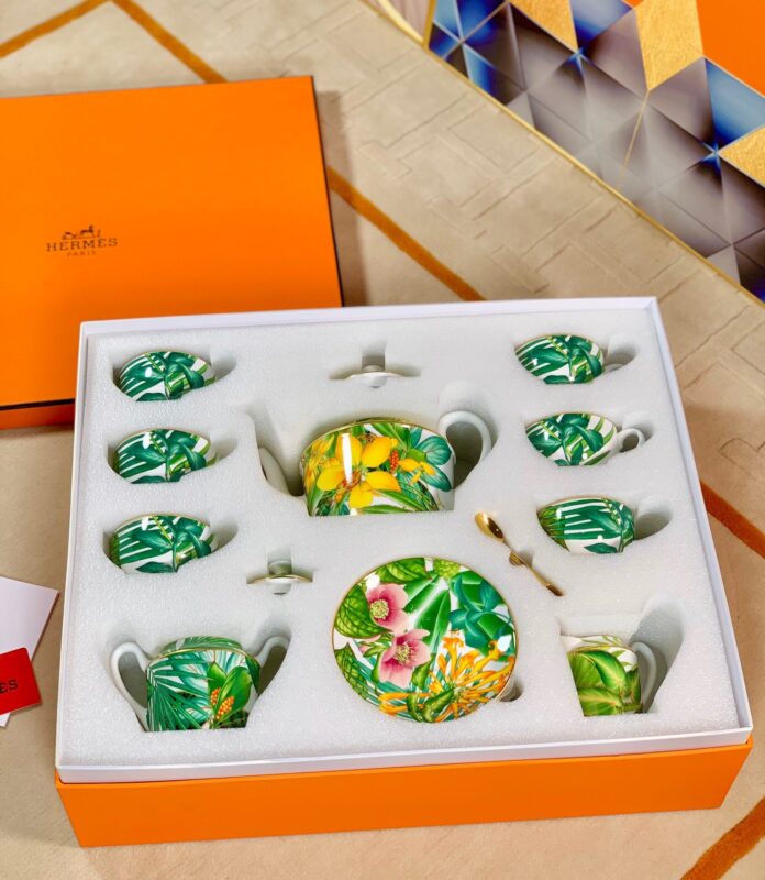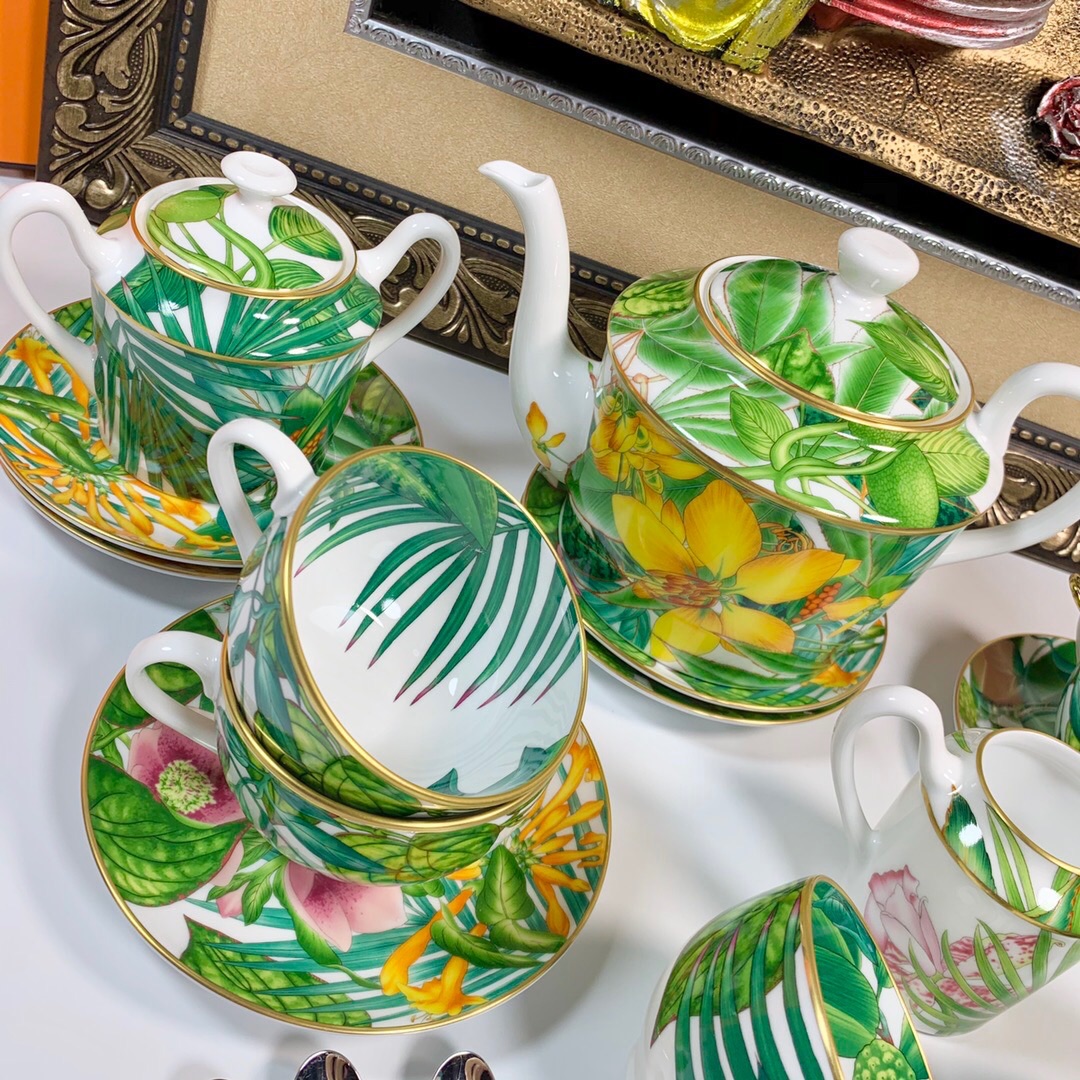 Coffee Set | “Hermes Ika Series” 15 pieces Configuration: large pot 1, milk pot 1, sugar pot 1, 6 cups, 6 saucers.Exquisite gift box packaging