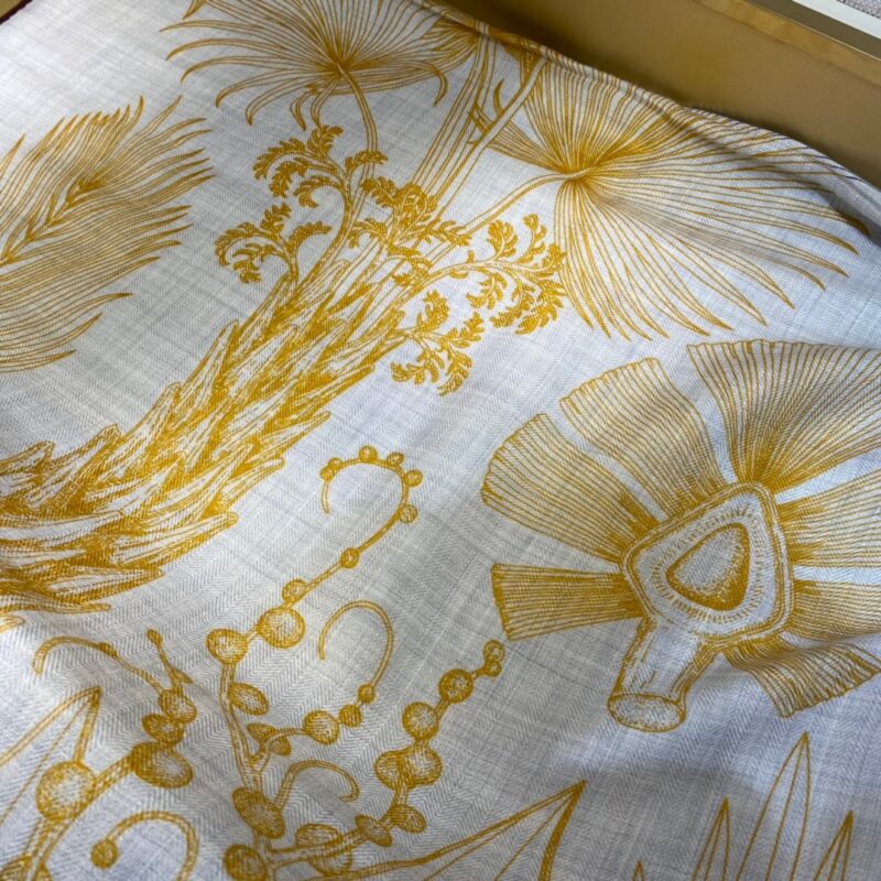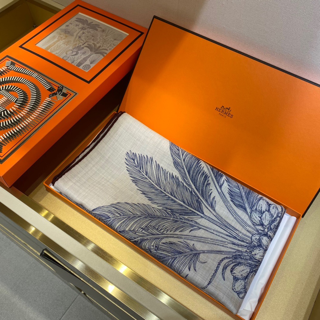 Hermes Desert Oasis. 140*140cm. 70% cashmere 30% silk (imported yarn-dyed fabric).