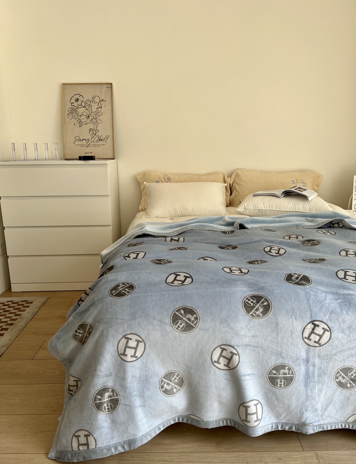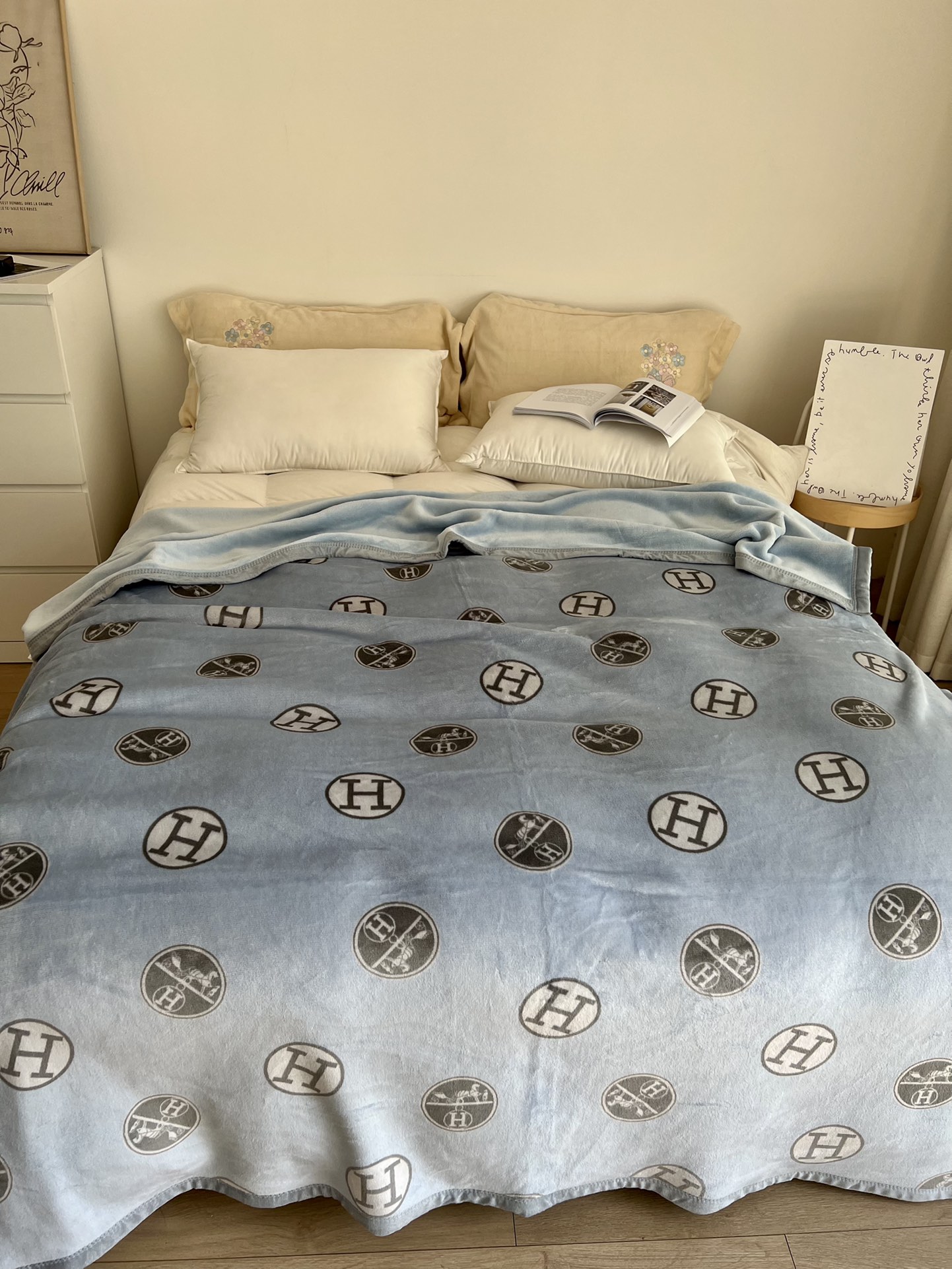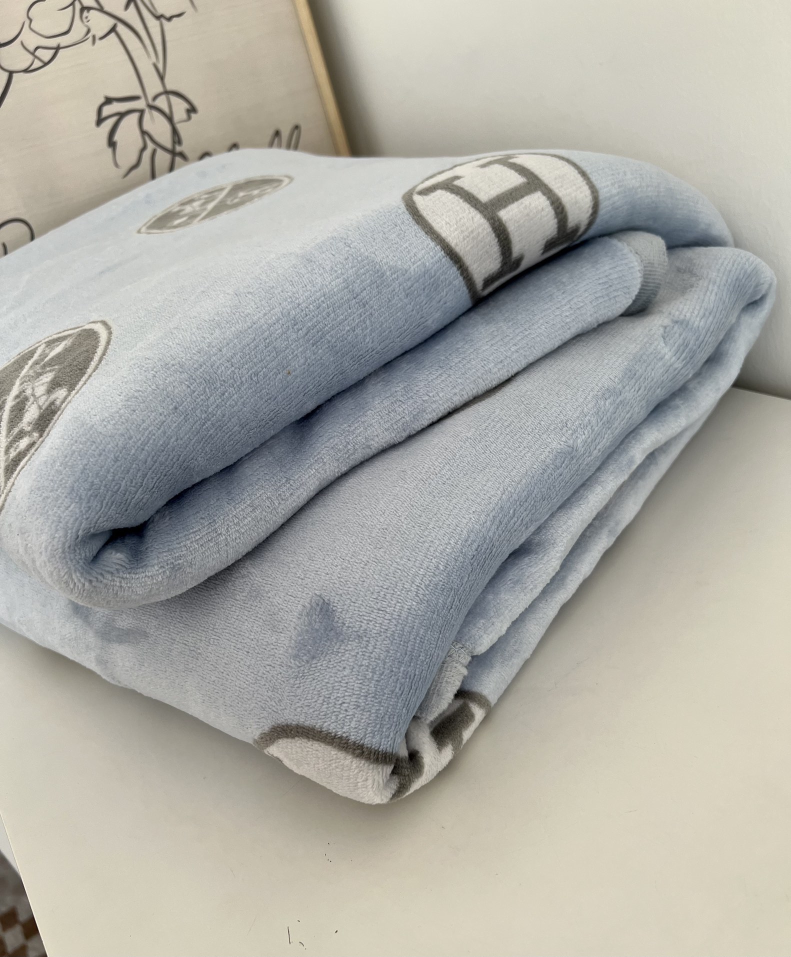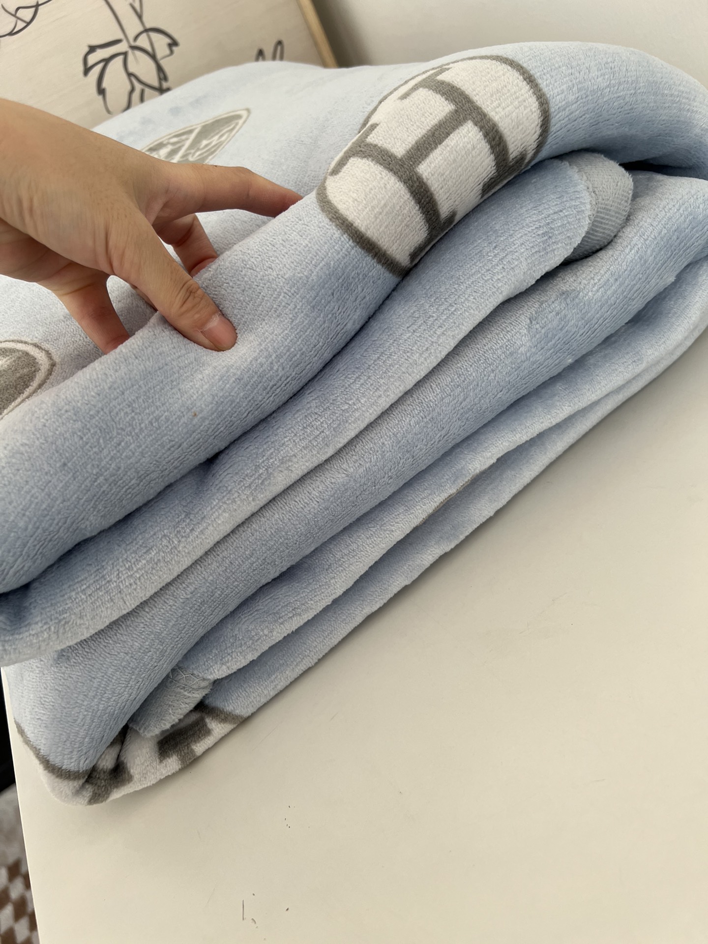Hermes Blanket Big imported fleece double-sided blanket. Imported velvet double-sided blanket, high-end quality, more overall sense, stronger texture, double layer will not be separated, thicker. The double layer is thickened, and the fine fleece is more warm. Environmentally friendly printing and dyeing, support washing, no pilling, no lint; add conductive silk. Specifications: 200*230cm Weight: 2.3KG