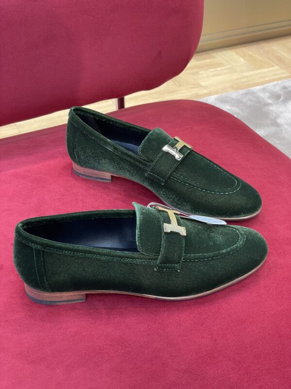 Hermes velvet H-buckle loafersImported velvet fabric, different texture, very niche and special. Exquisite H-shaped buckle decoration, simple atmosphere, full of high-end sense. The lining is lambskin, the sole is imported cow leather from Italy, and the front piece is made of injection molding rubber. Sizes: 35-41