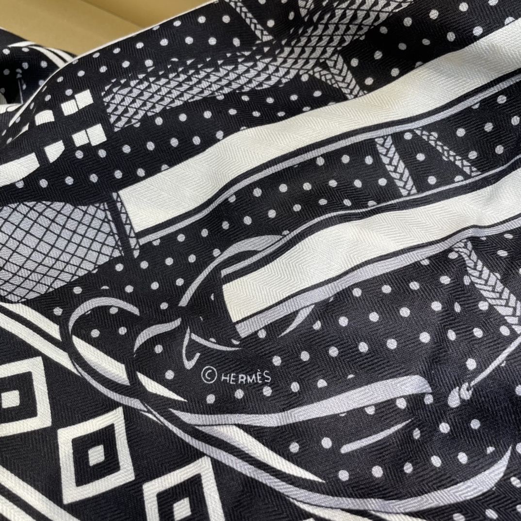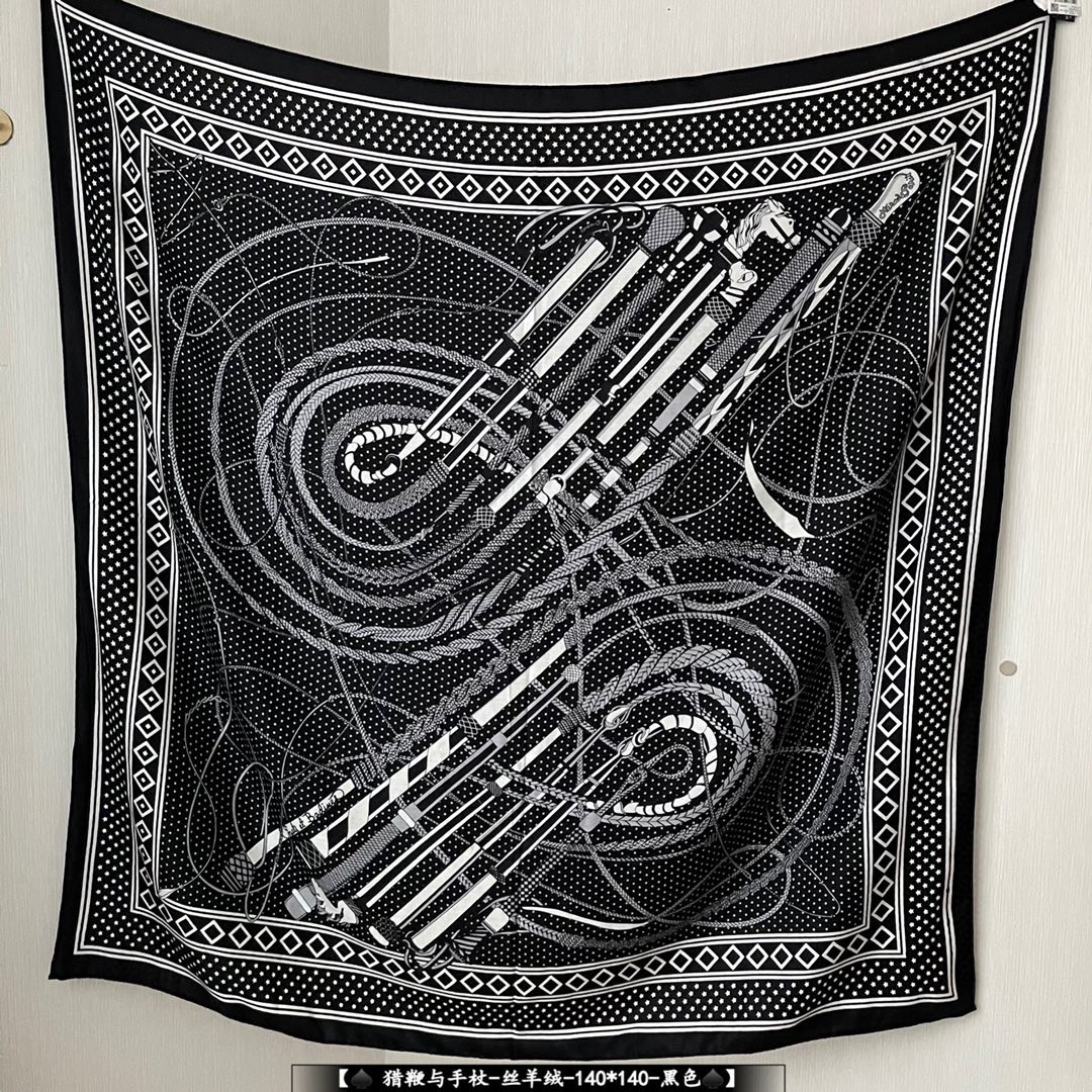 Hermes hunting whip and walking stick. 140*140cm. 70% cashmere 30% silk
