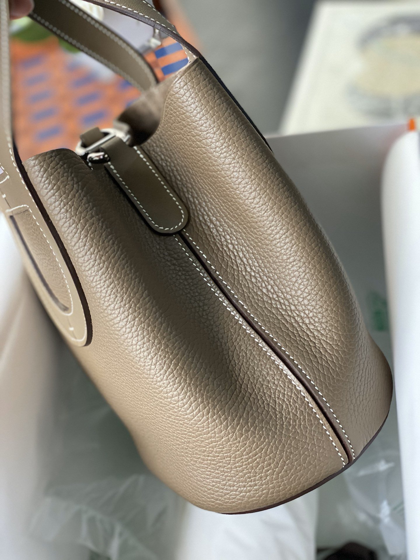 From the leather handle, metal buckle to the base, it is shaped with an anchor chain bucket handle. Let a bag with simple lines be low-key and cute!