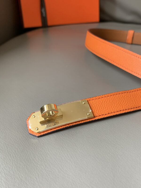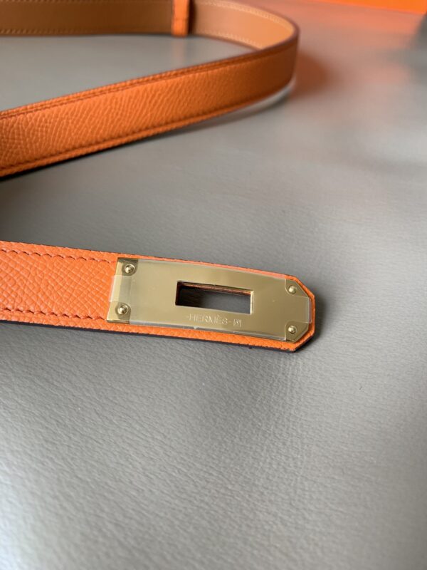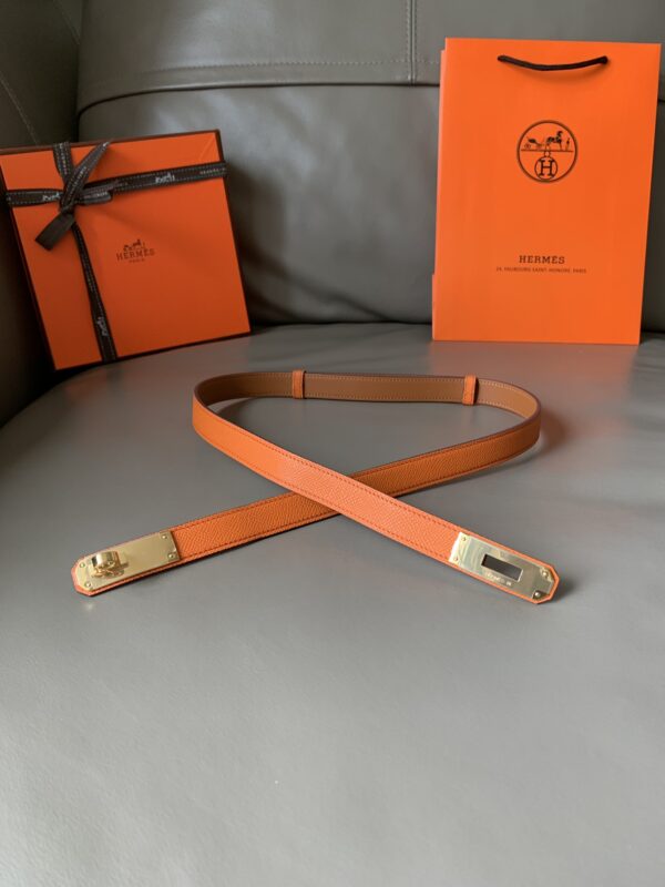 Hermes classic Kelly 18 belt. Epsom calfskin belt with palladium-plated. Kelly stainless steel belt buckle. With the clever sliding design. This versatile belt can be worn around the waist or hip for an adjustable length.