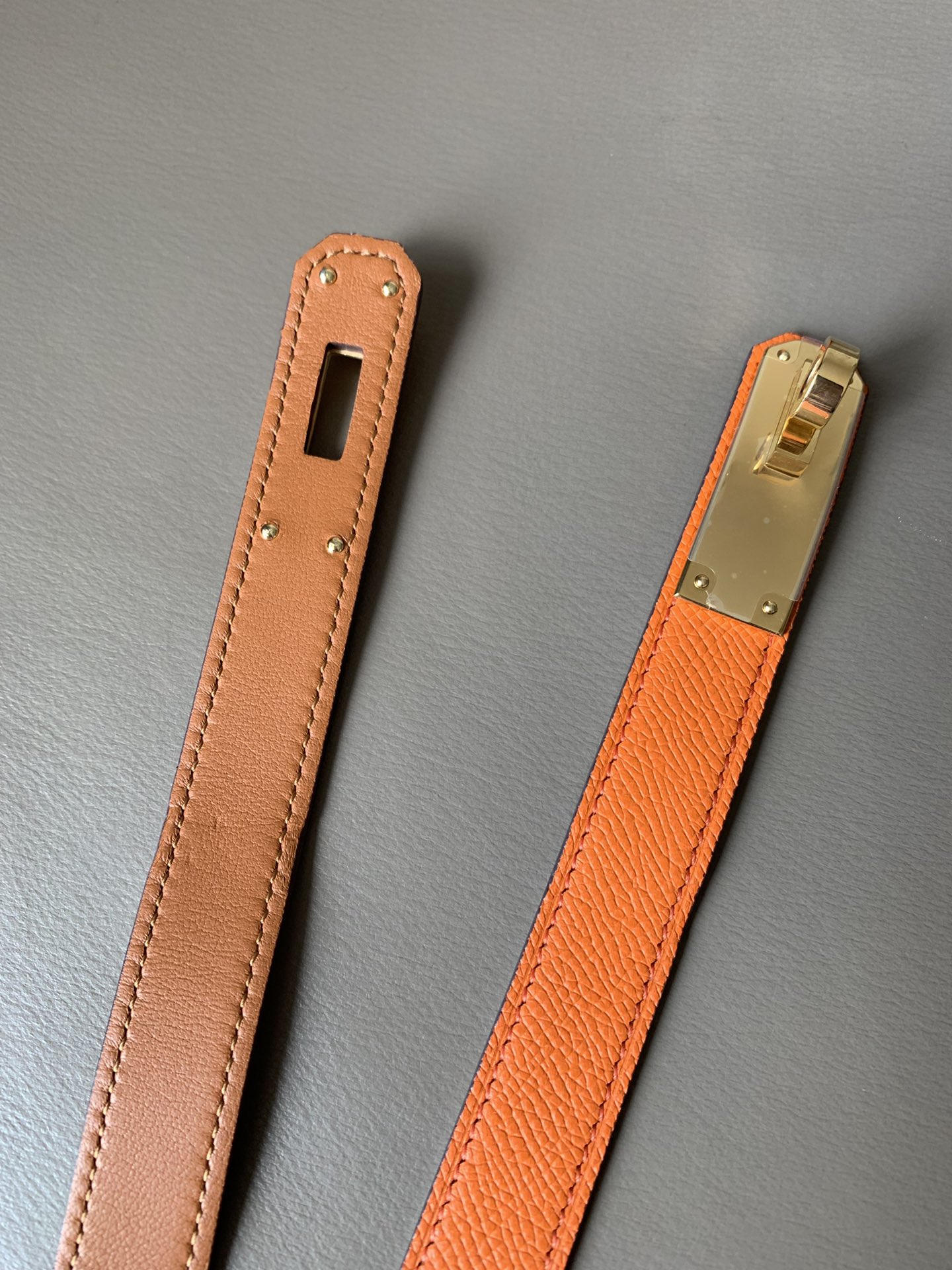 Hermes classic Kelly 18 belt. Epsom calfskin belt with palladium-plated. Kelly stainless steel belt buckle. With the clever sliding design. This versatile belt can be worn around the waist or hip for an adjustable length.