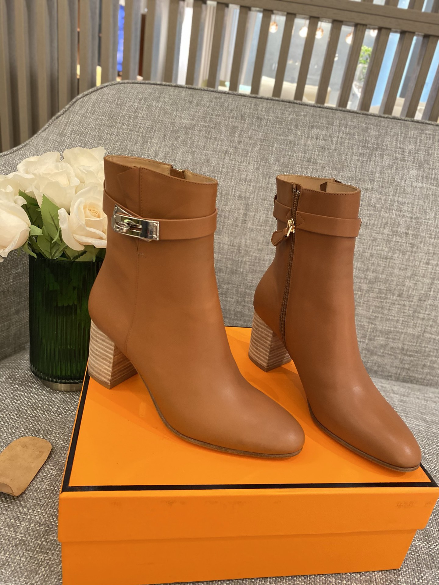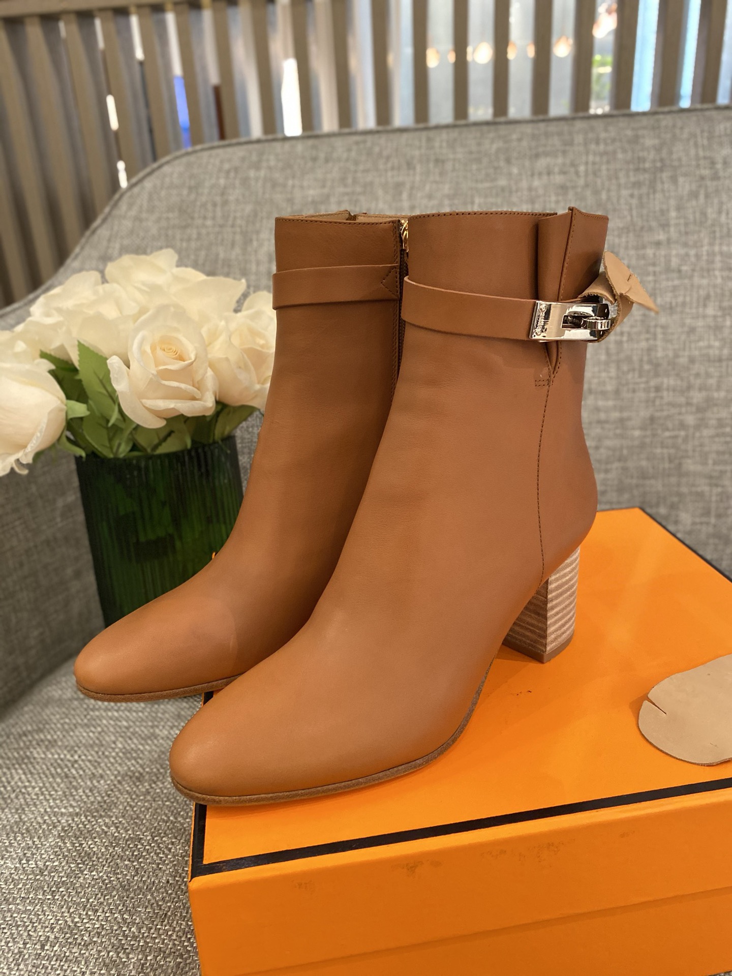 Hermes brand classic kelly buckle ankle boots // calf face cow inner layer leather and leather bottom.Size35-39 / order 40 non-refundable