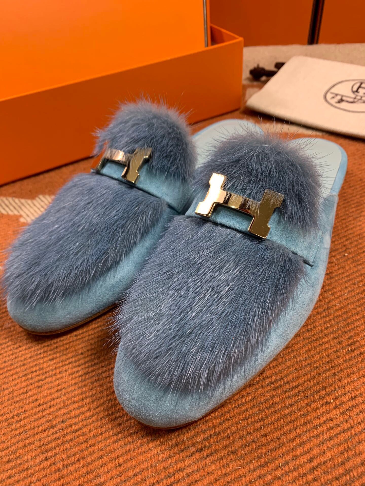 Hermes Mules in Mink Fur (Fully Handmade)