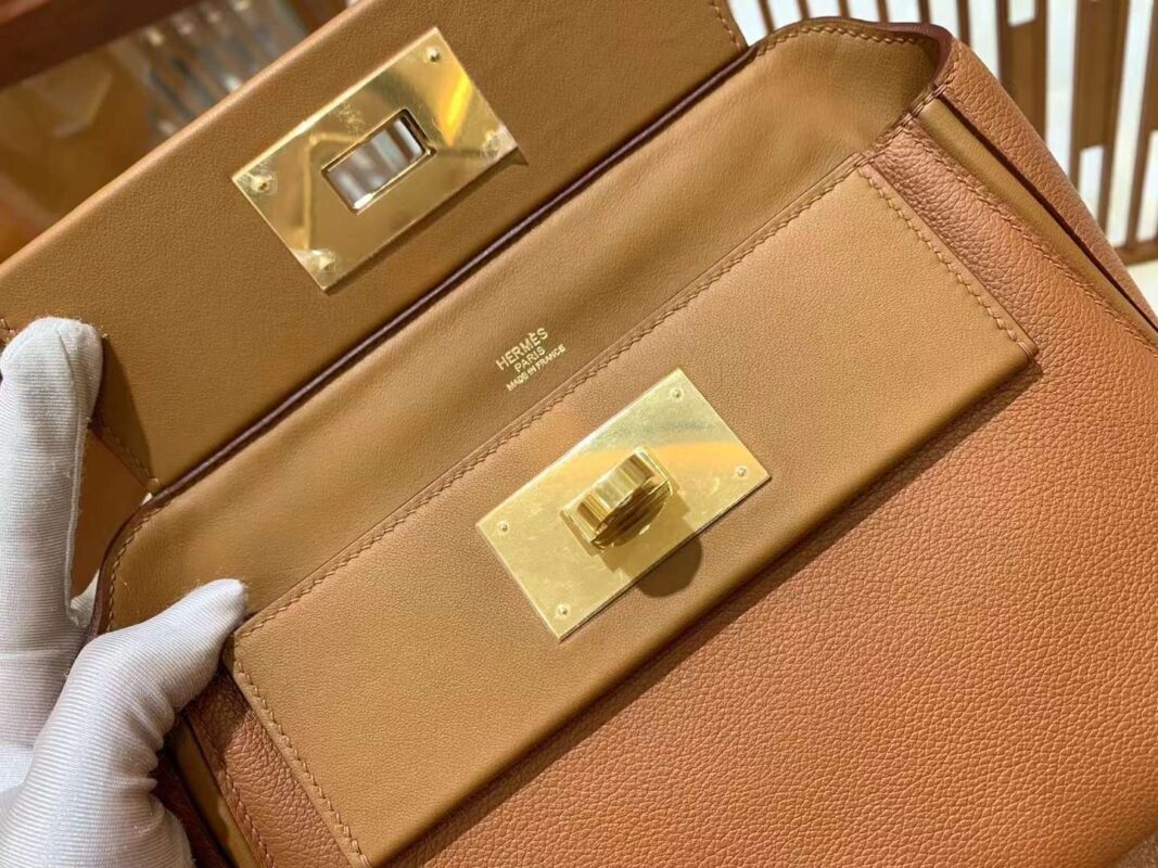 Hermes Mini 2424. Golden Brown. Gold Buckle.