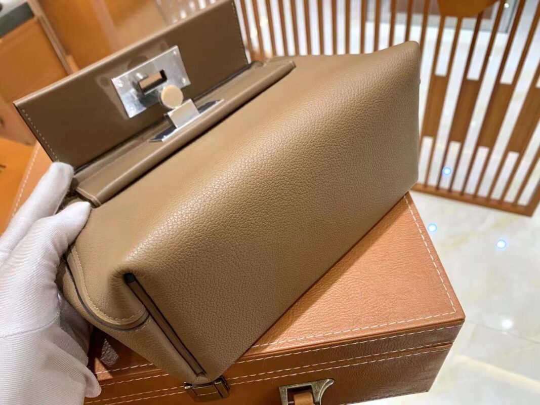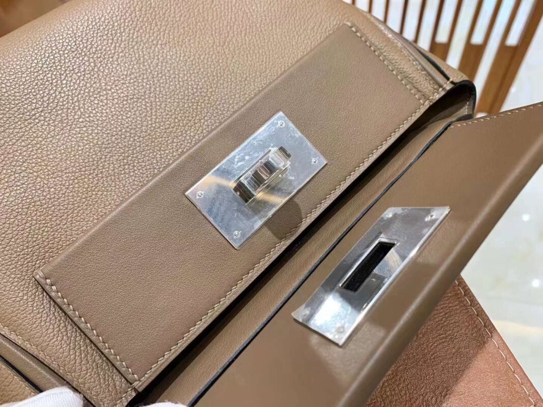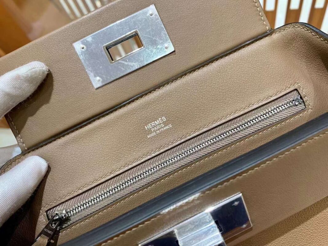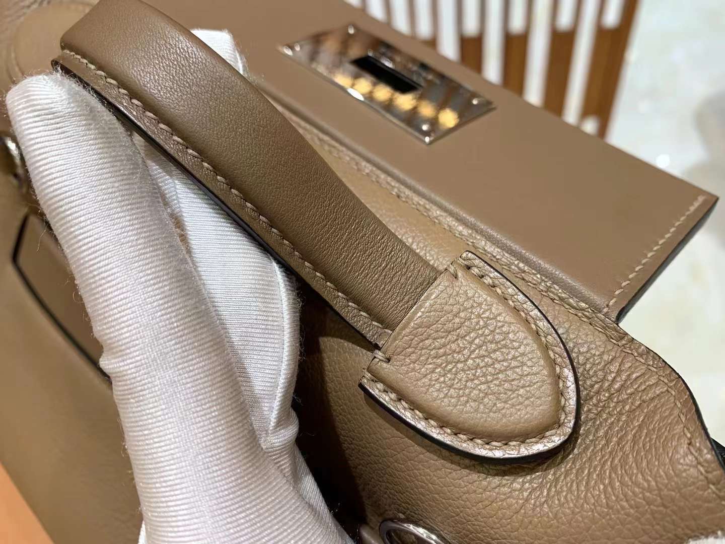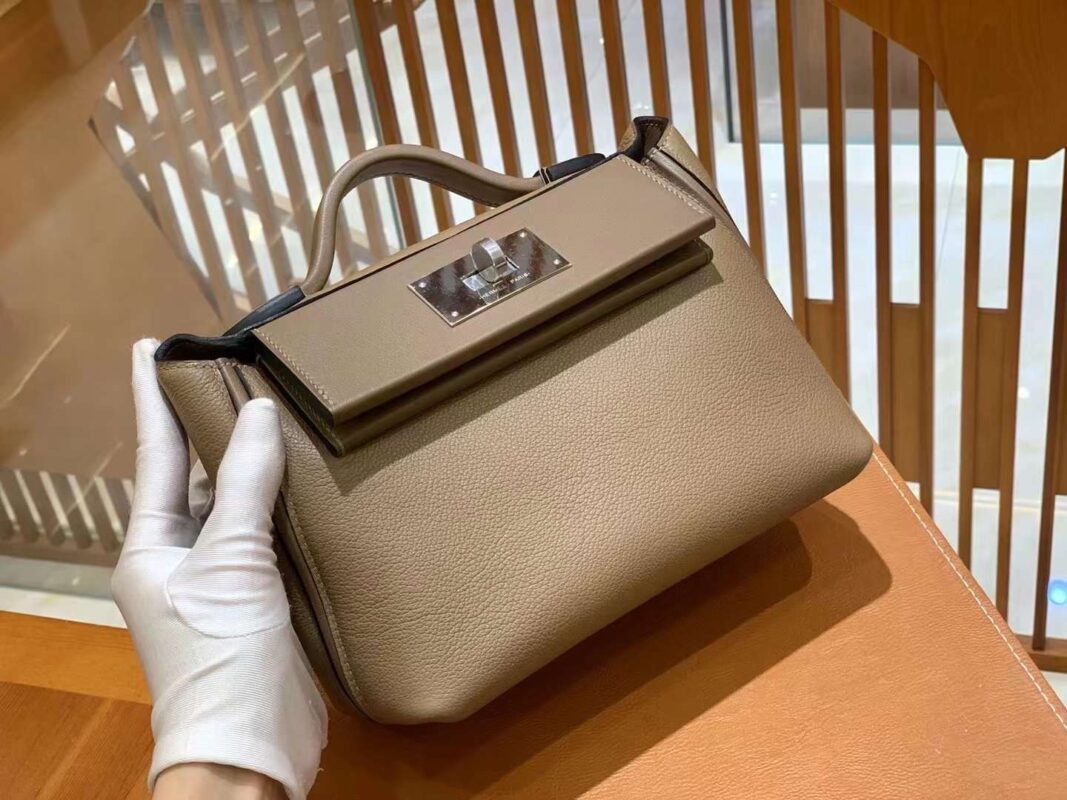 Hermes Mini 24/24 Weimaraner Grey. Silver Buckle.
