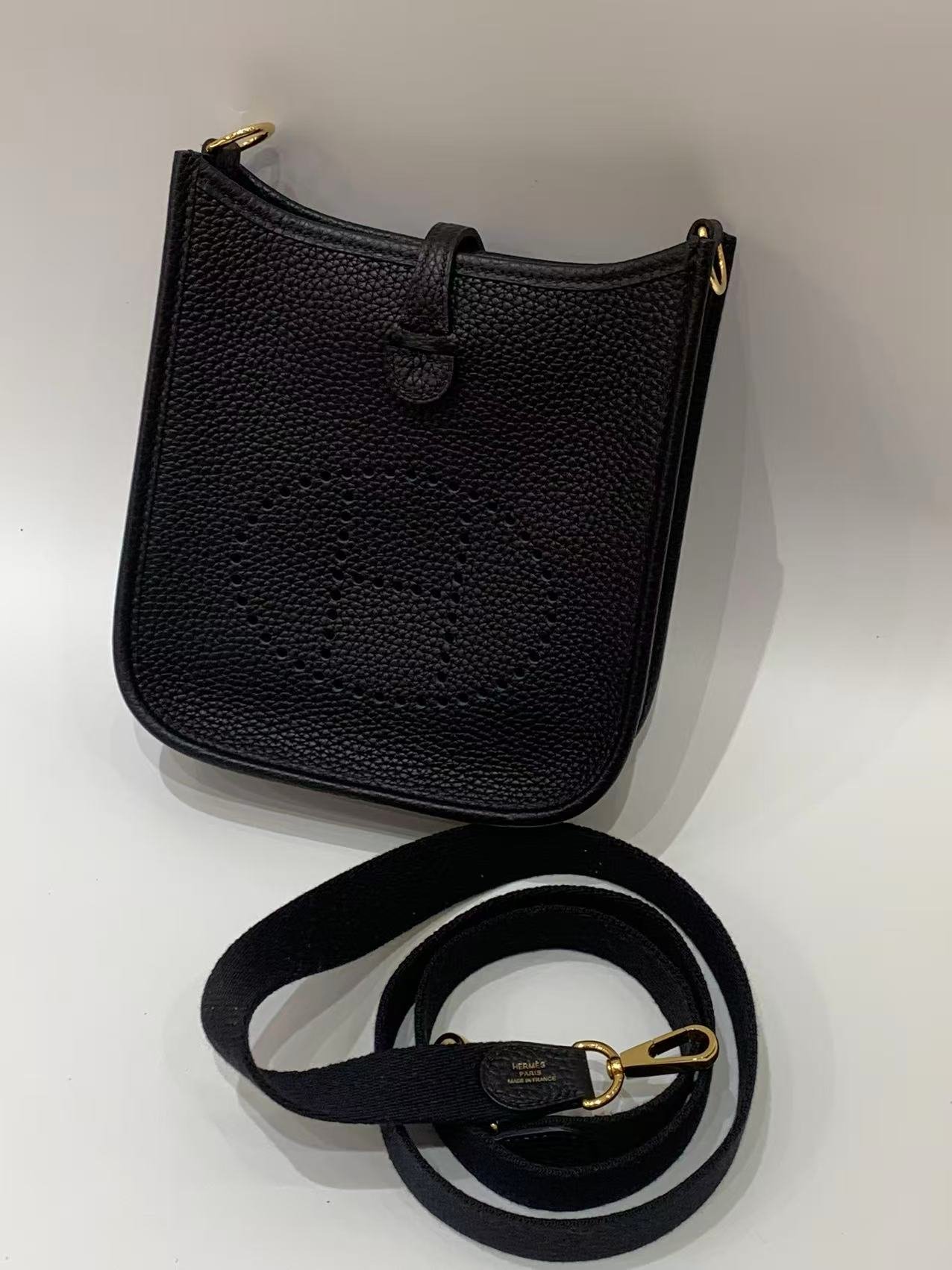 / hermes mini evelyne black color 24k gold plated hardware