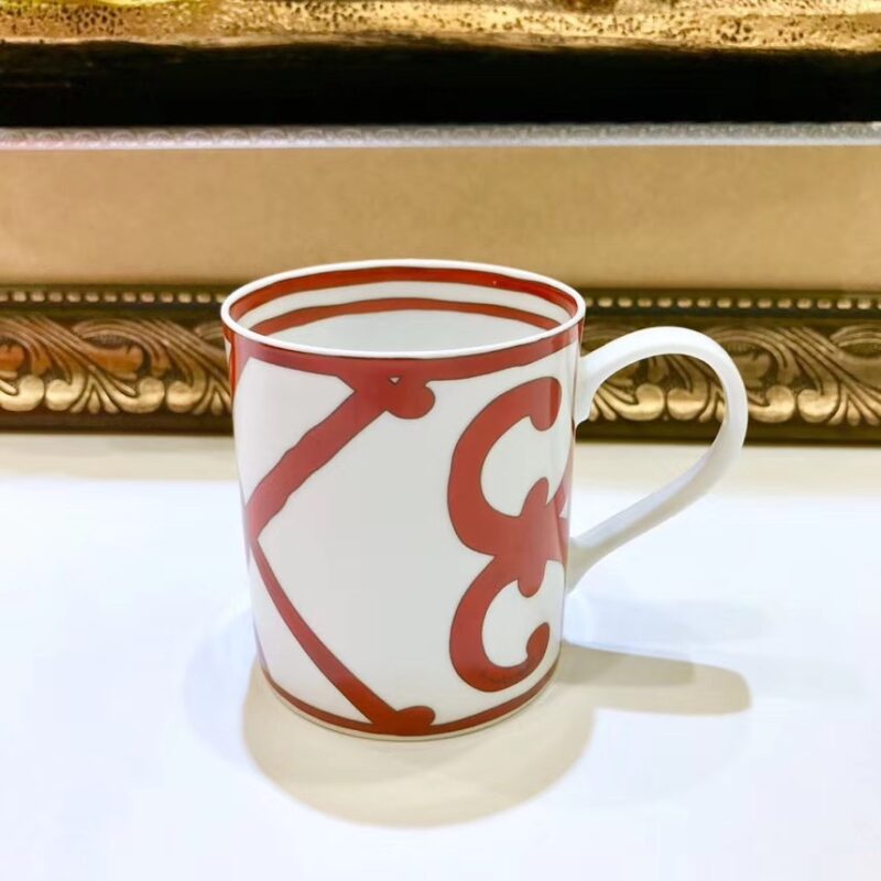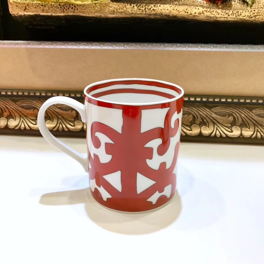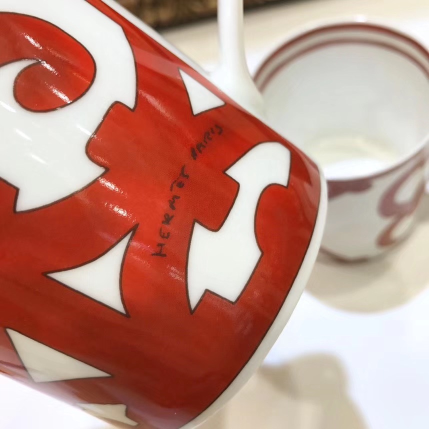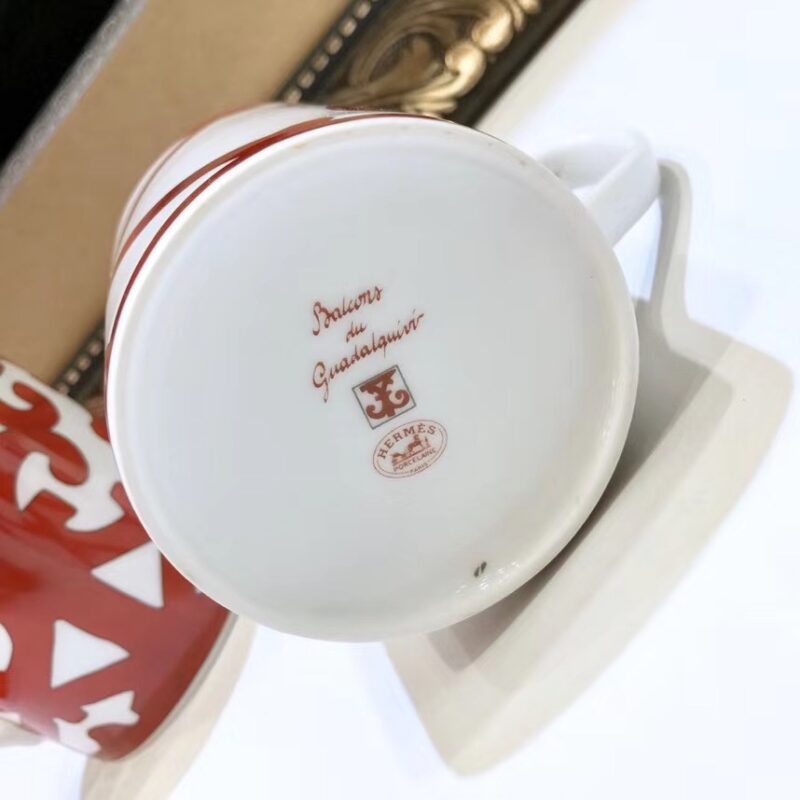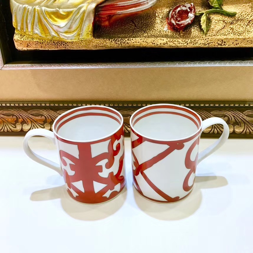 Hermes Mug Pair with Red BarsMade of bone china.With exquisite gift box packaging