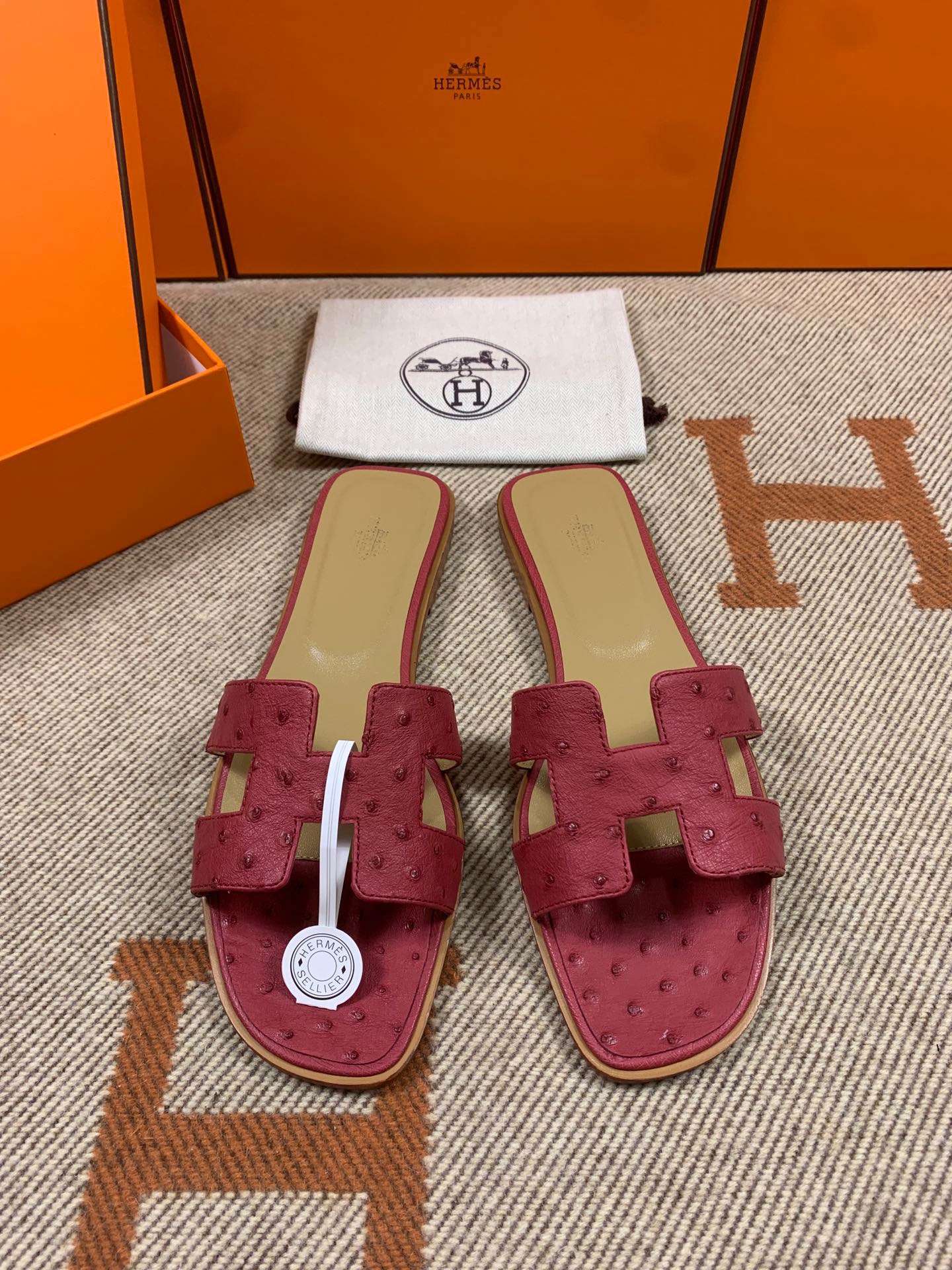 Hermes New Oran Sandals in Ostrich (fully handmade)