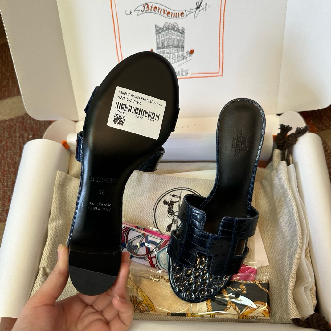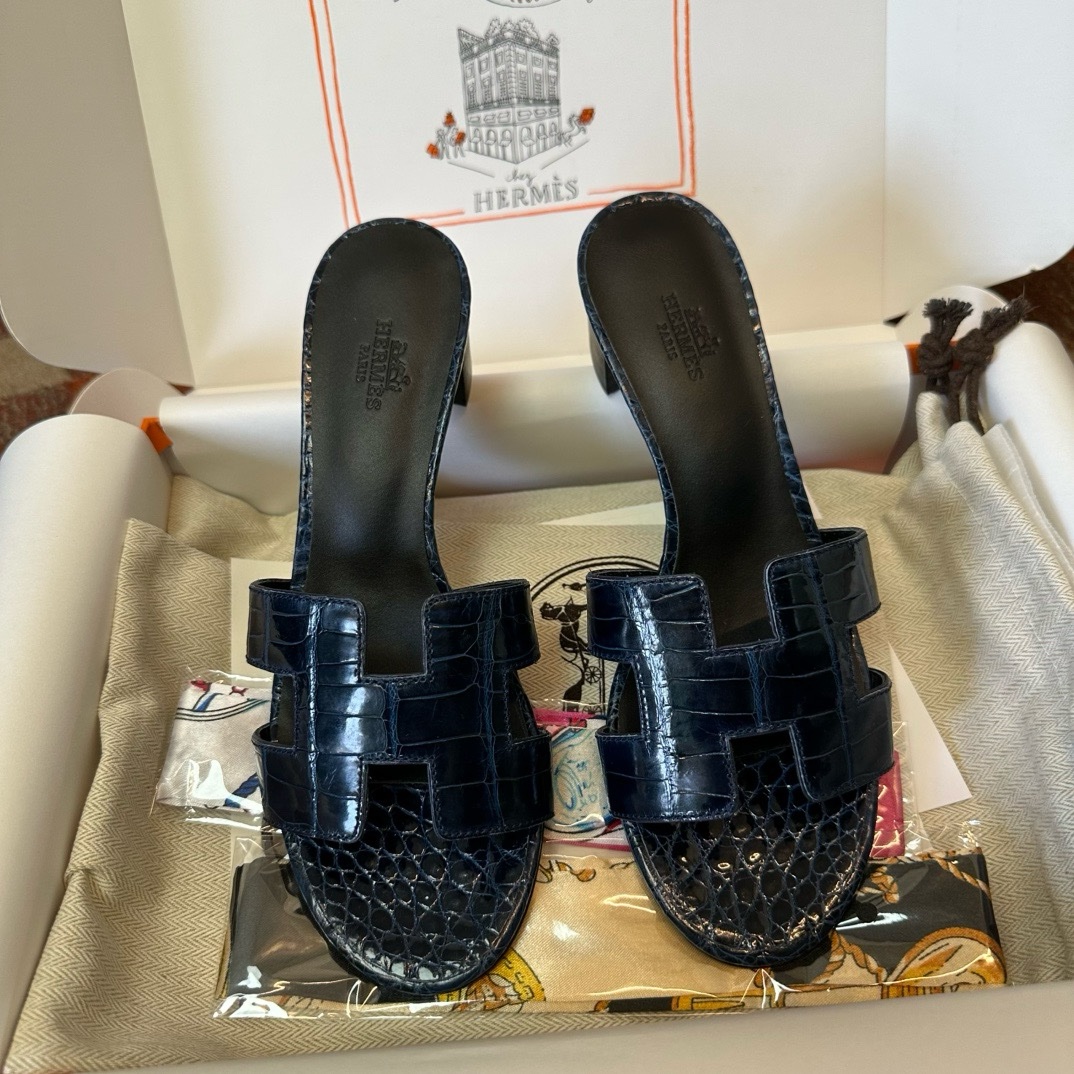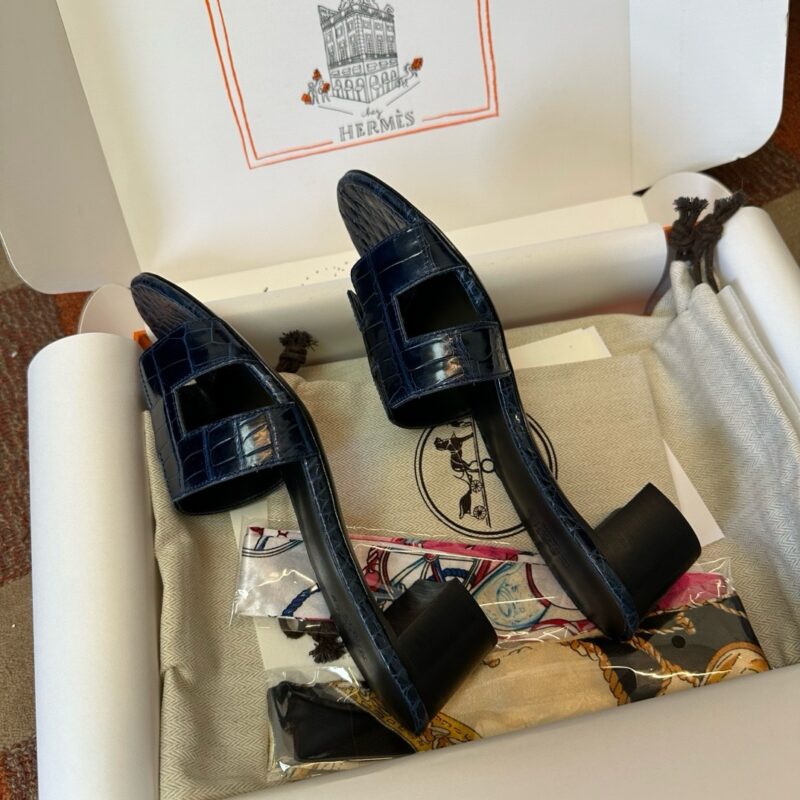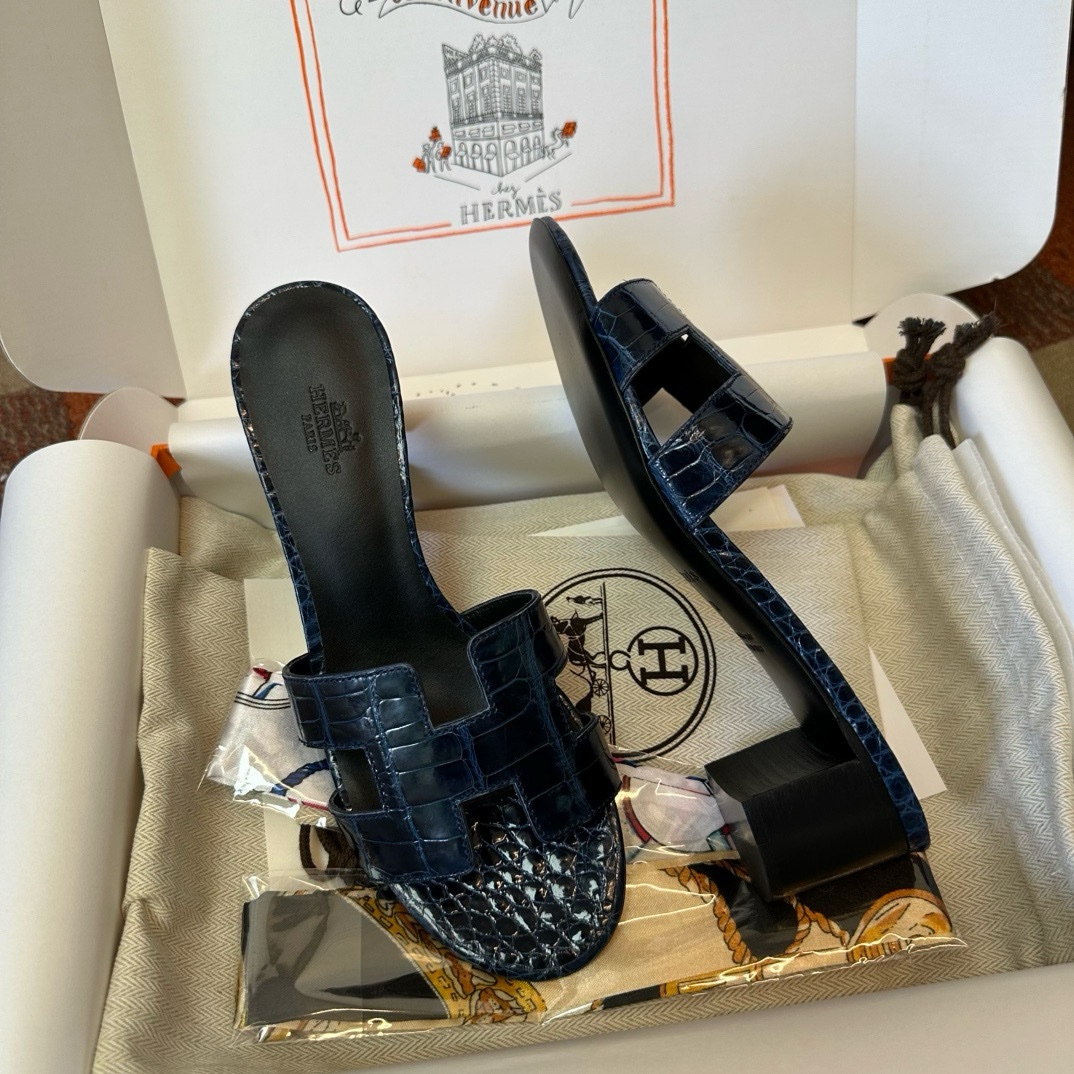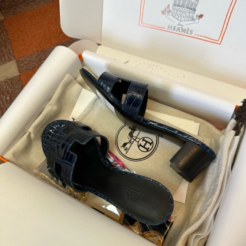 Hermès Oasis black croco sandal Women's fully handmade authentic quality replica