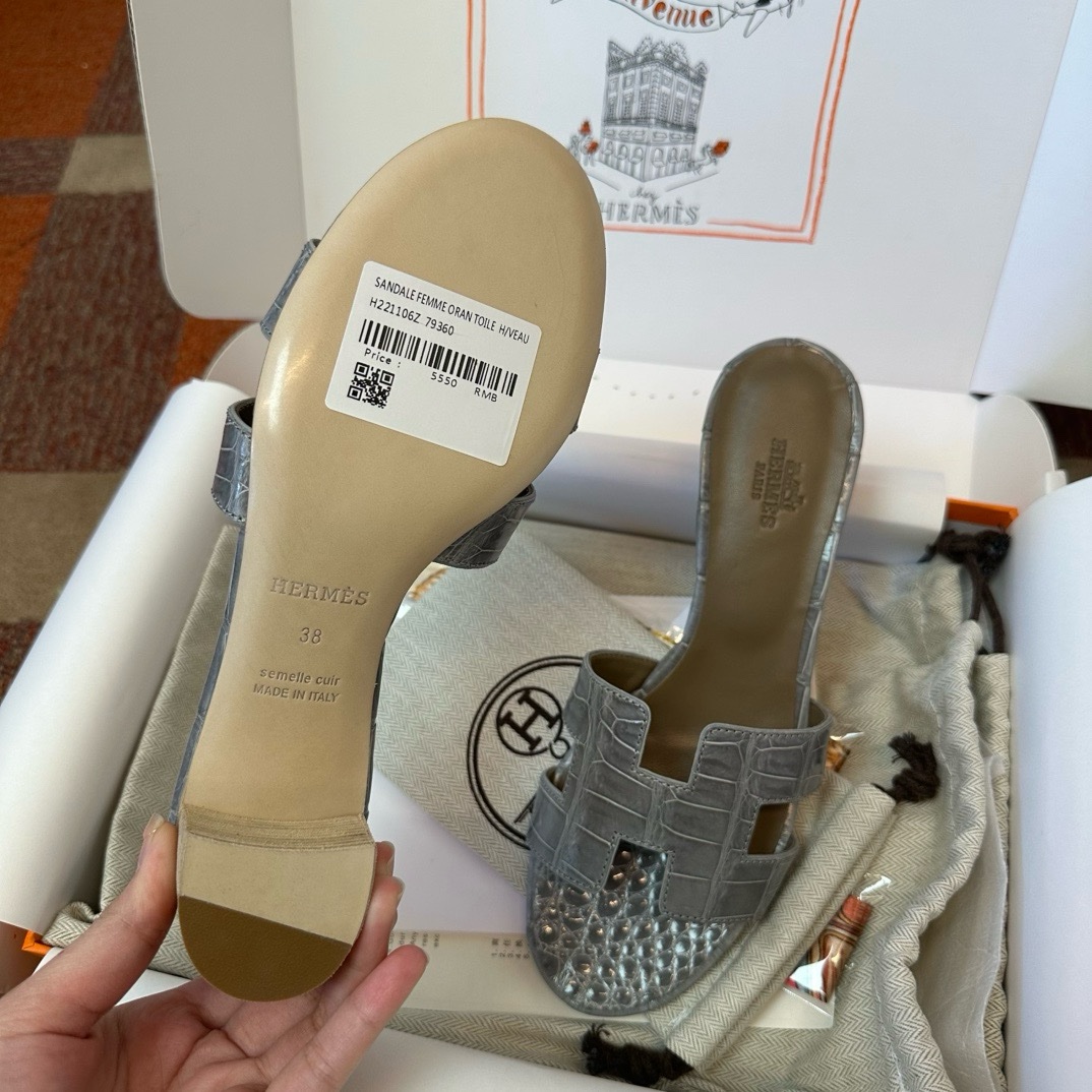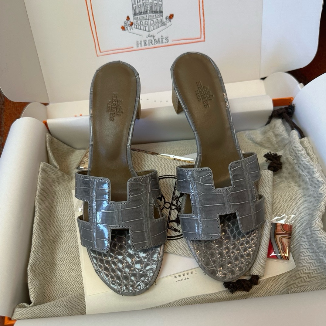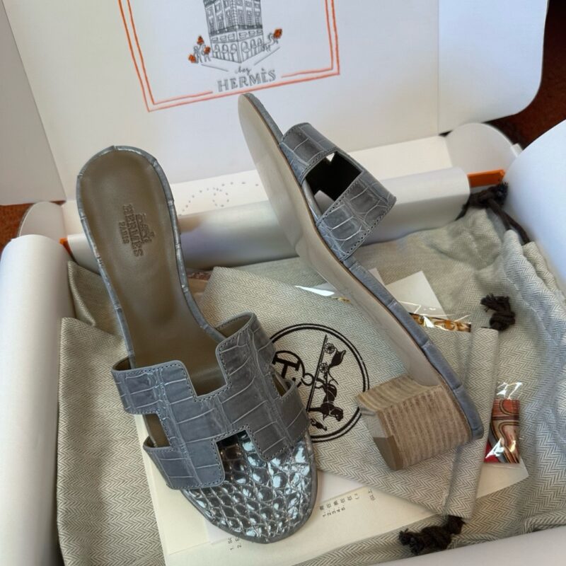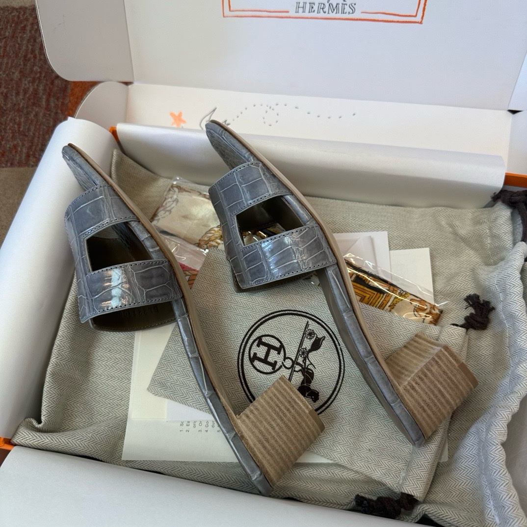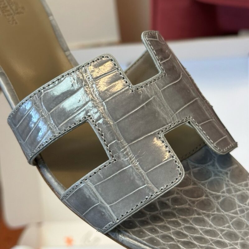 Hermès Oasis grey croco sandal Women's fully handmade authentic quality replica