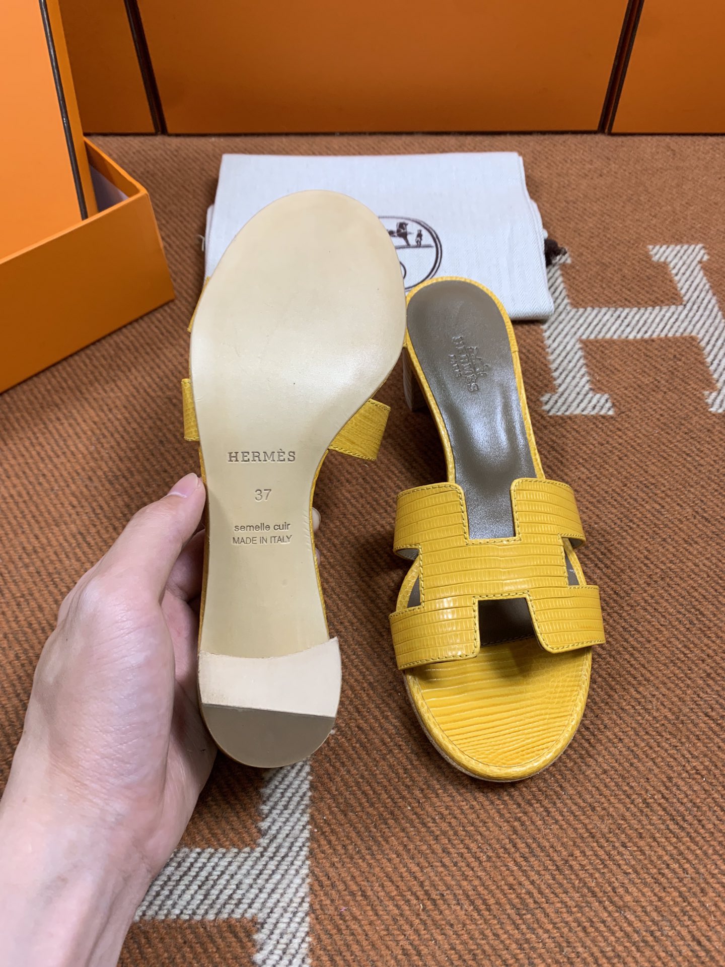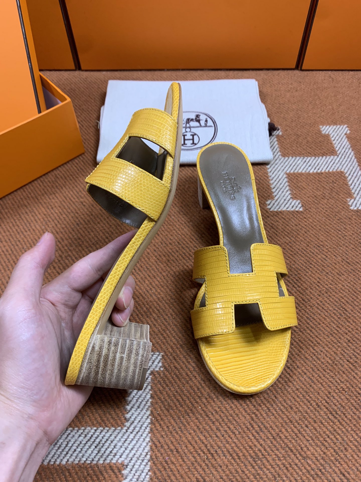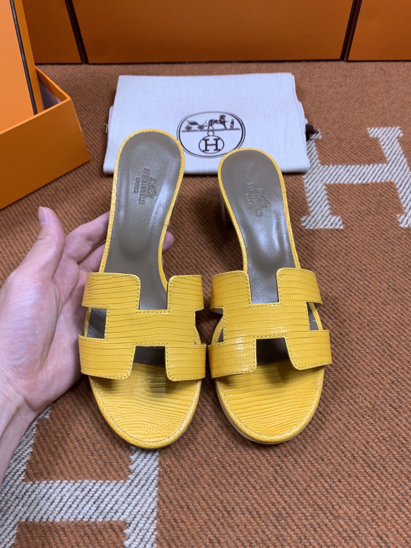 Hermes Oasis lizard sandals in Honey Yellow