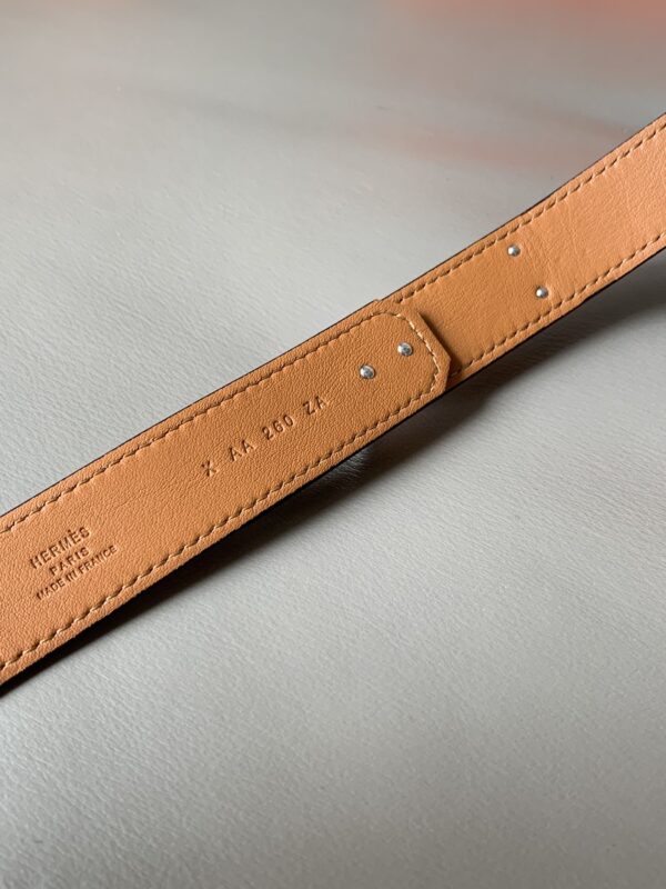 Hermes O’Kelly 24 belt Soho calfskin belt, with palladium-plated Kelly bag style stainless steel belt buckle. Thanks to the clever connection, the belt can be worn at the waist or at the hip. The length can be adjusted by yourself. 35081260