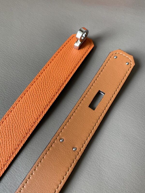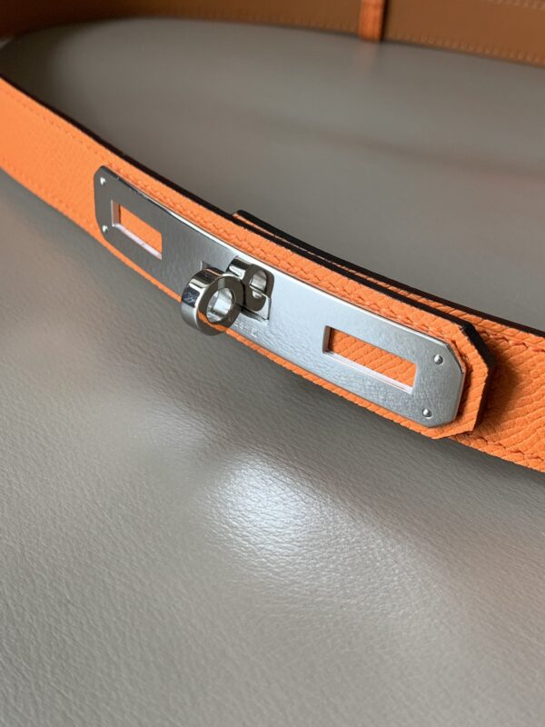 Hermes O’Kelly 24 belt Soho calfskin belt, with palladium-plated Kelly bag style stainless steel belt buckle. Thanks to the clever connection, the belt can be worn at the waist or at the hip. The length can be adjusted by yourself. 35081260