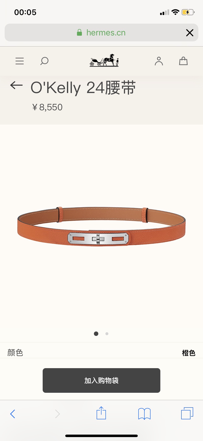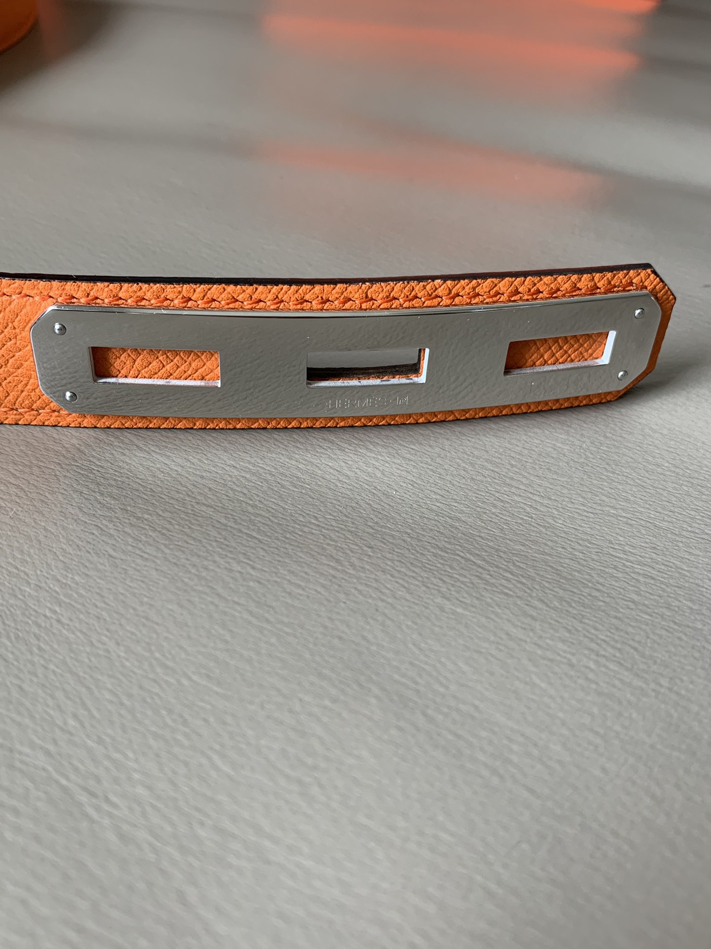 Hermes O’Kelly 24 belt Soho calfskin belt, with palladium-plated Kelly bag style stainless steel belt buckle. Thanks to the clever connection, the belt can be worn at the waist or at the hip. The length can be adjusted by yourself. 35081260