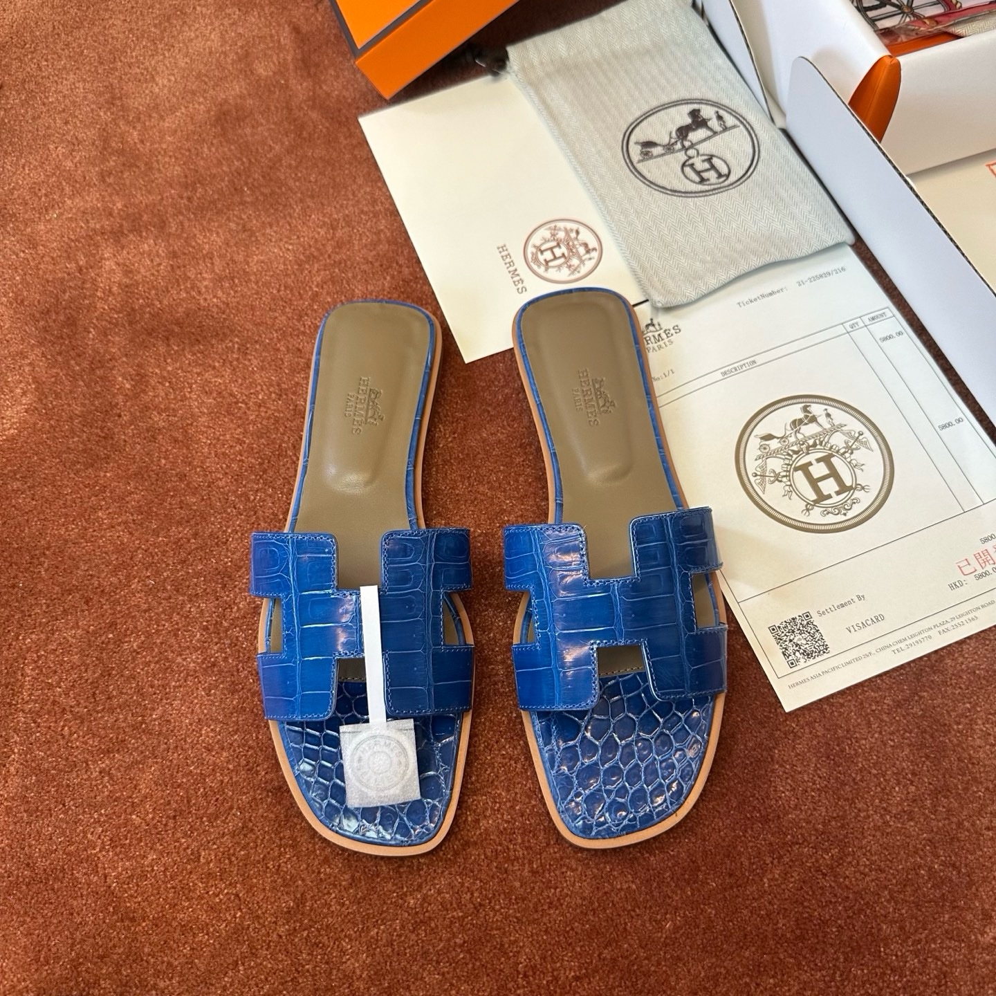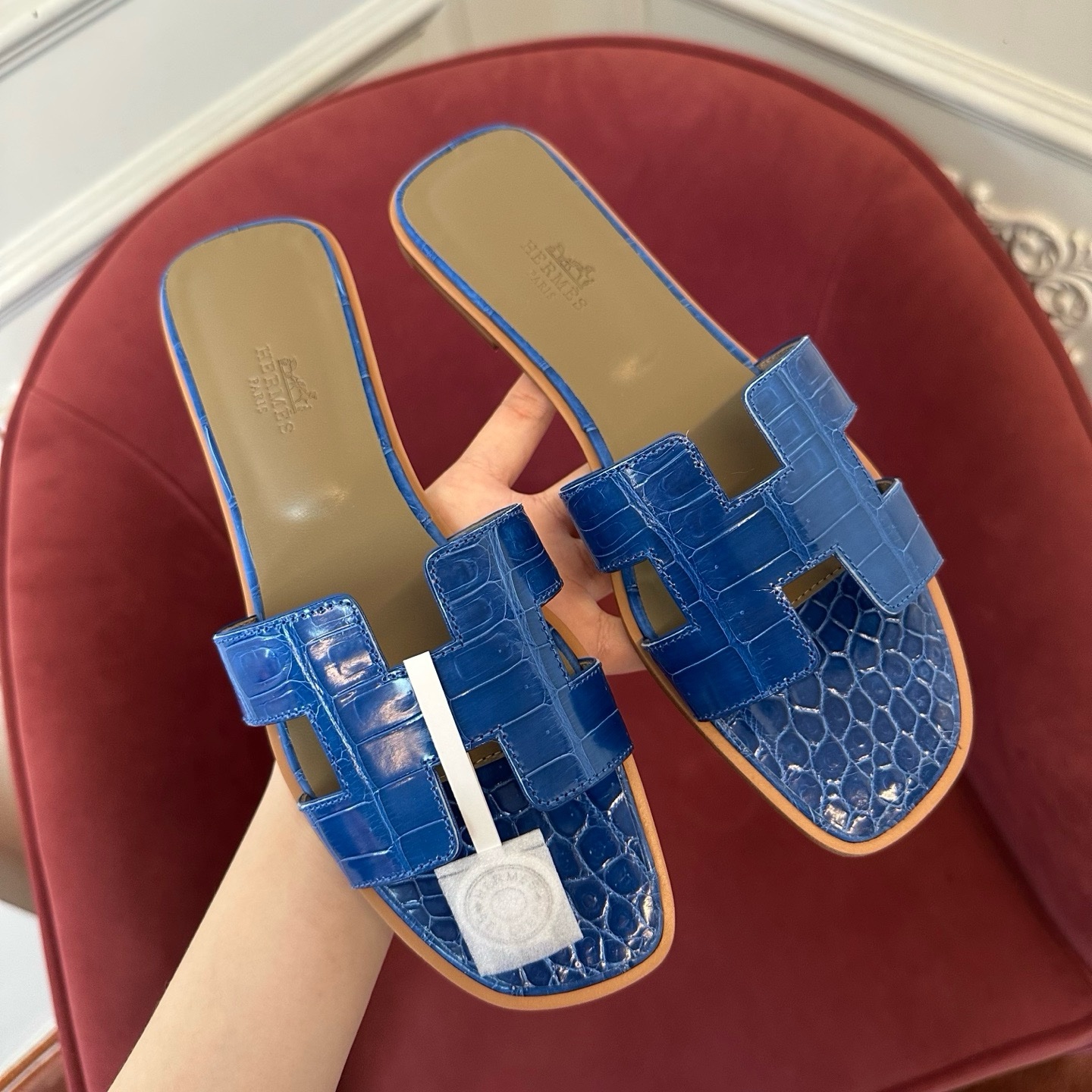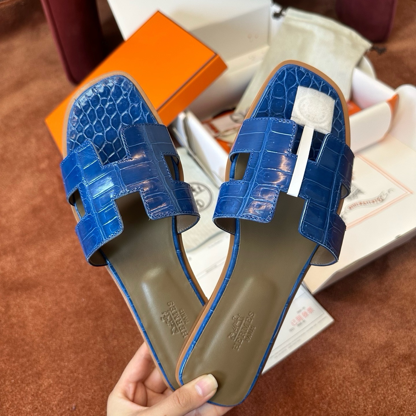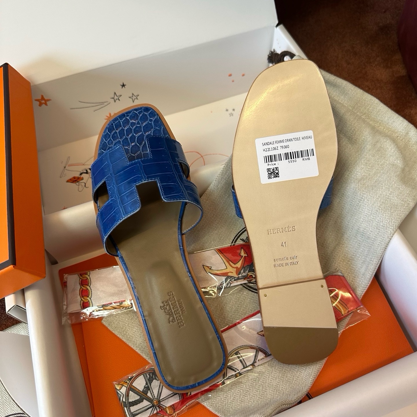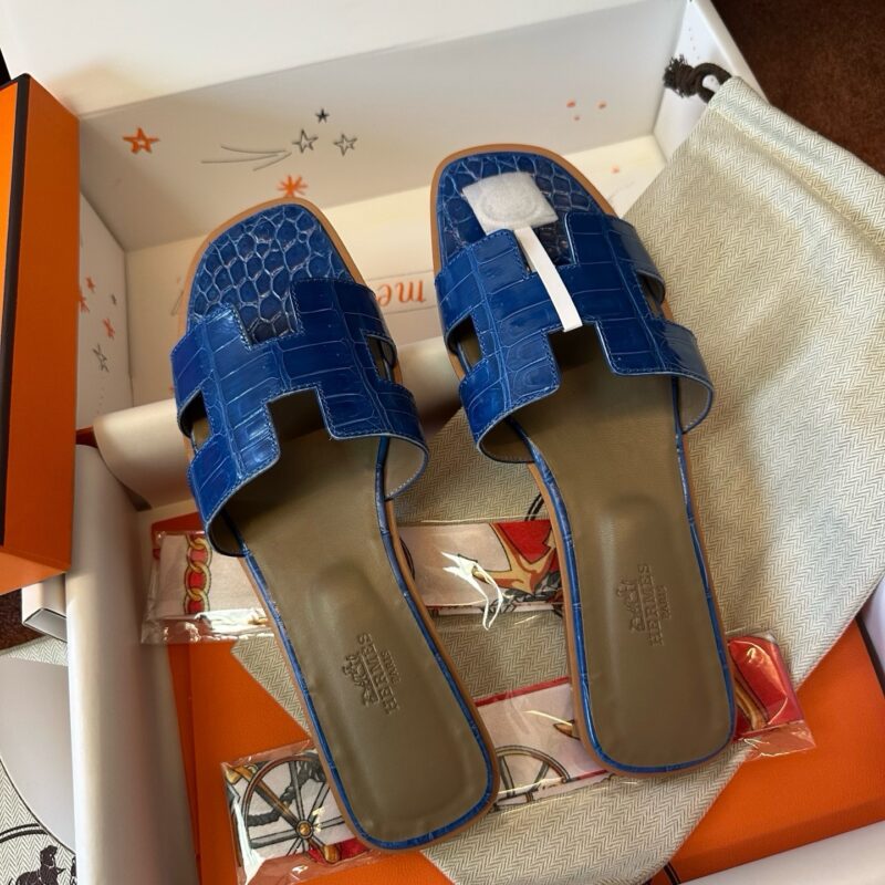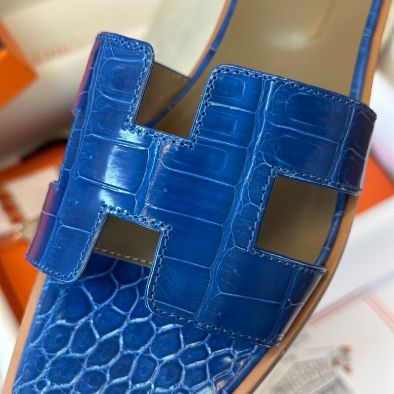 Hermès Oran croco blue sandal Women's fully handmade authentic quality
