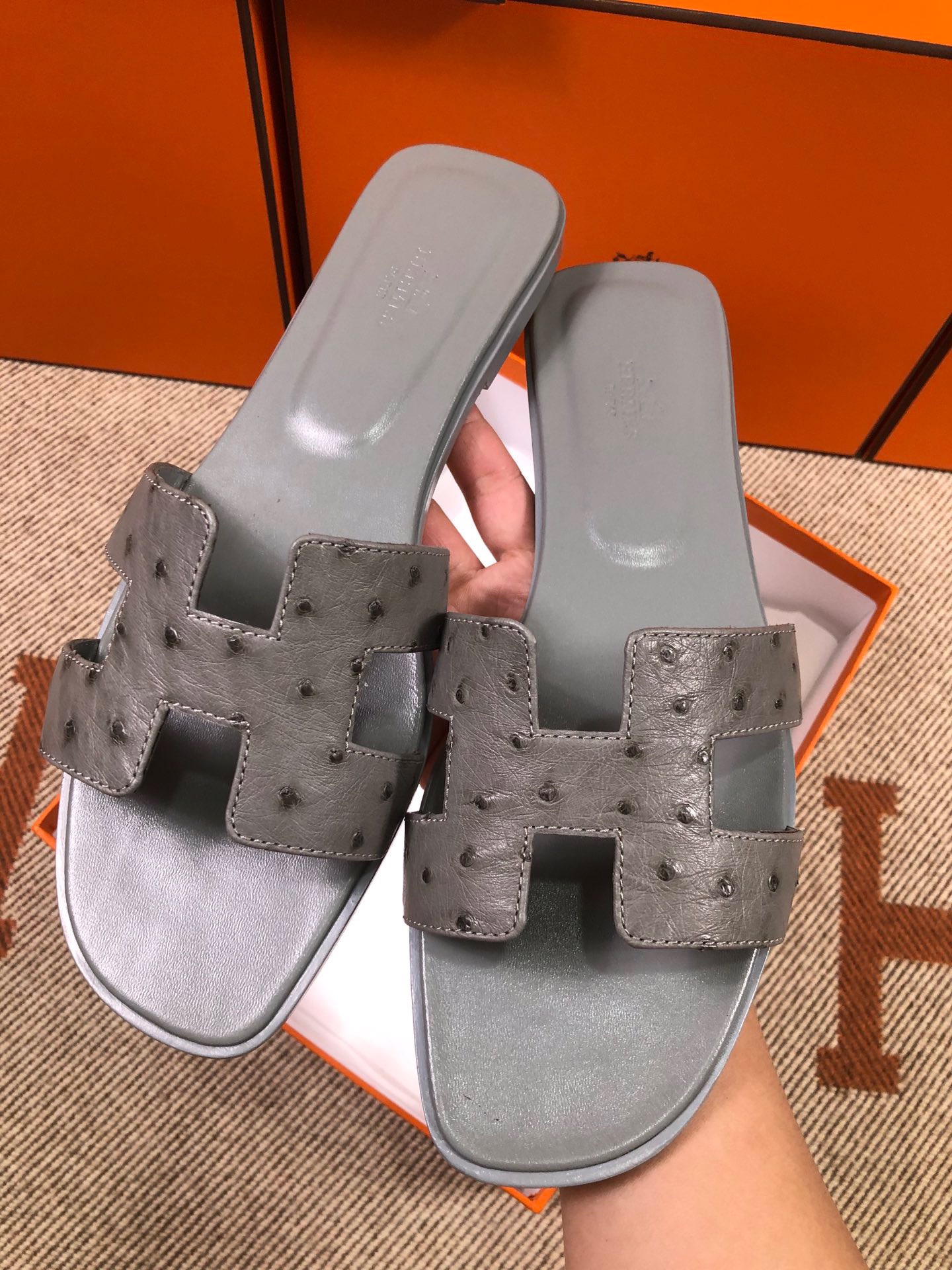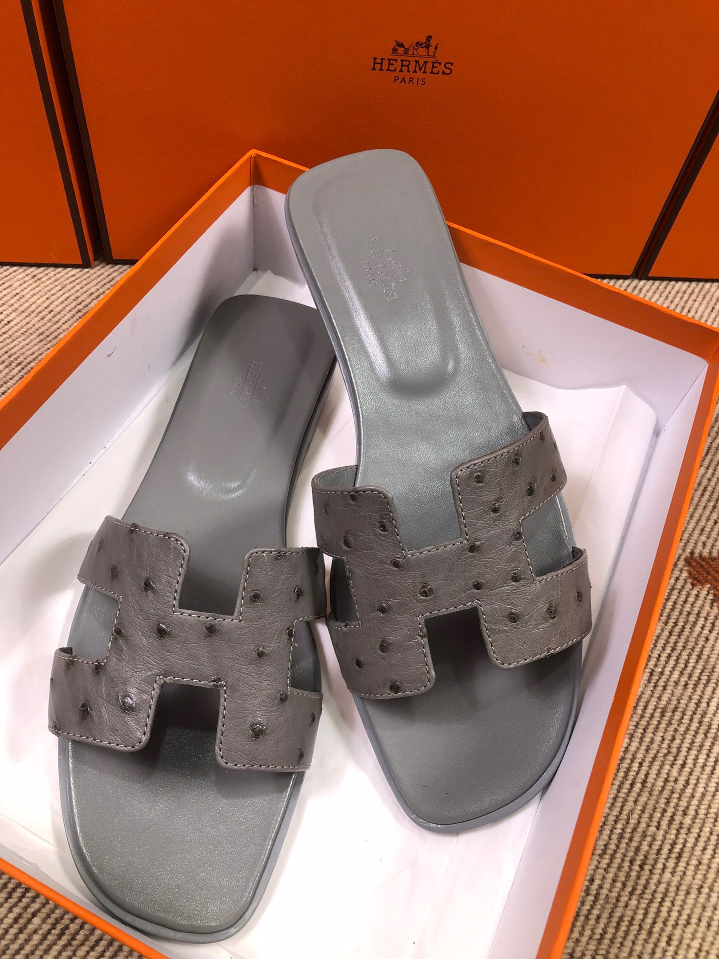 Hermes Oran Sandals in Ostrich (Fully Handmade)