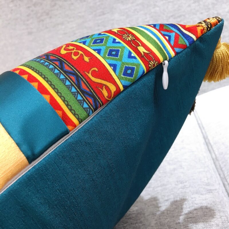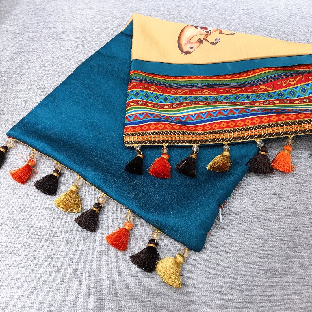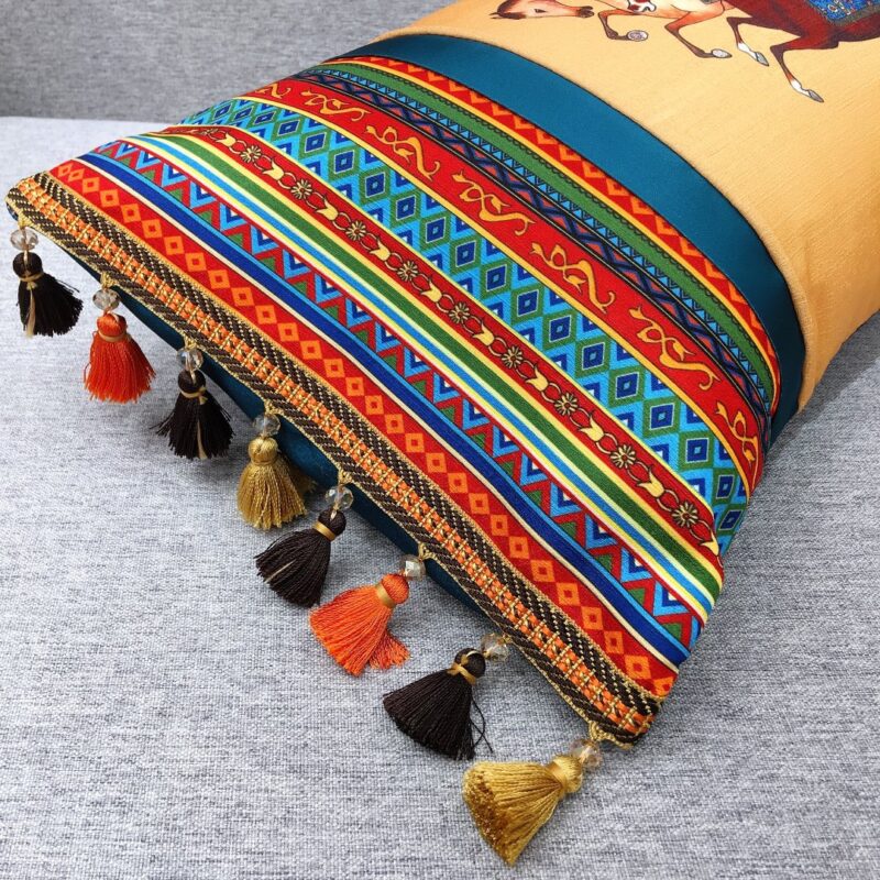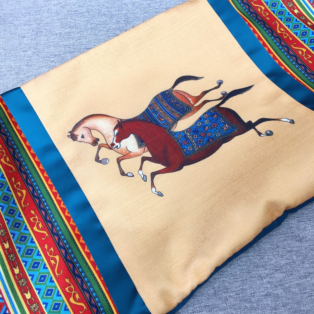 Hermes new product. Pillow Wrinkled silk satin + handmade tassel pendant double horse Size: 29*54cm