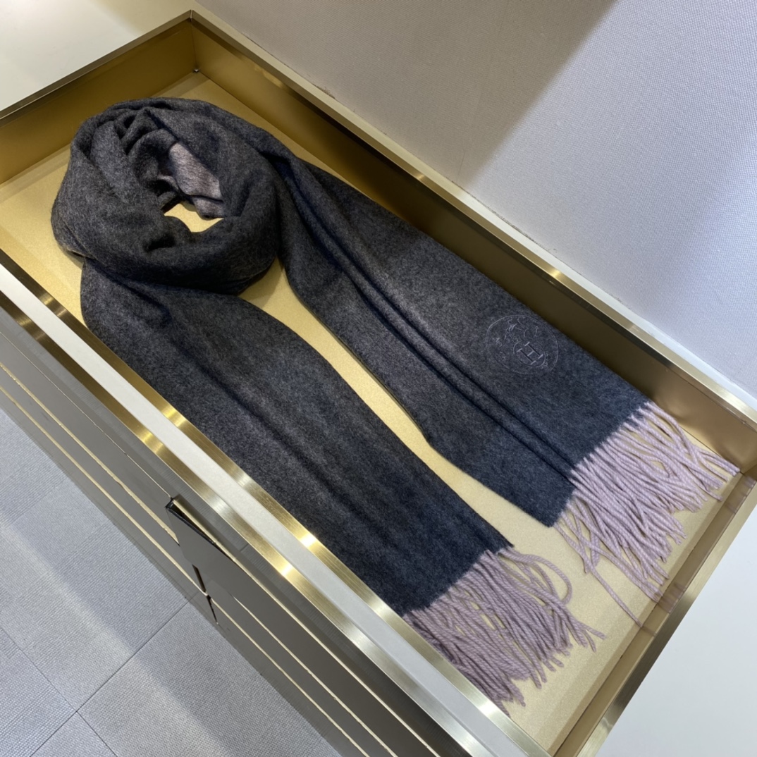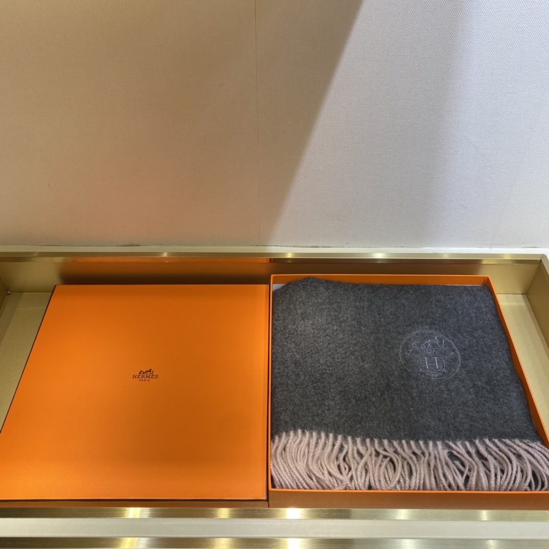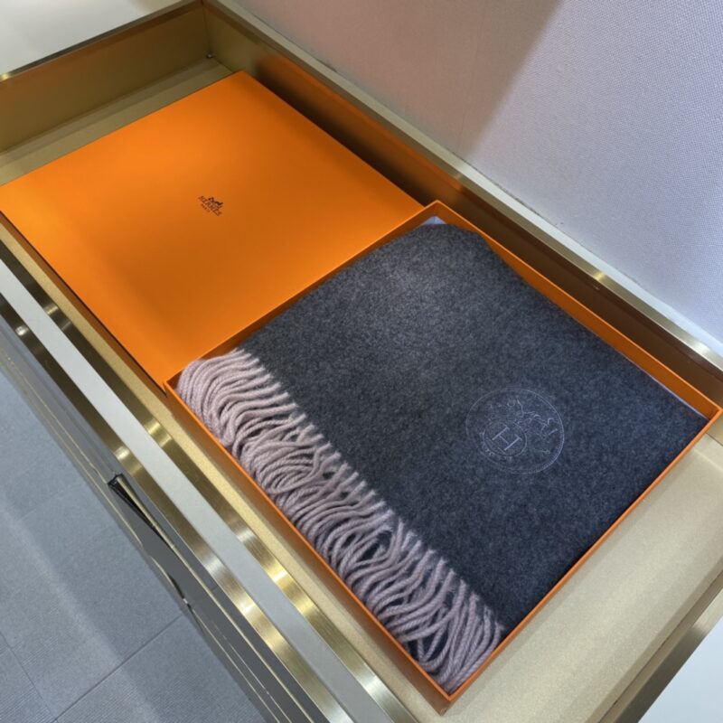 Hermes plain double-sided cashmere shawl. 200*70cm. 100% cashmere