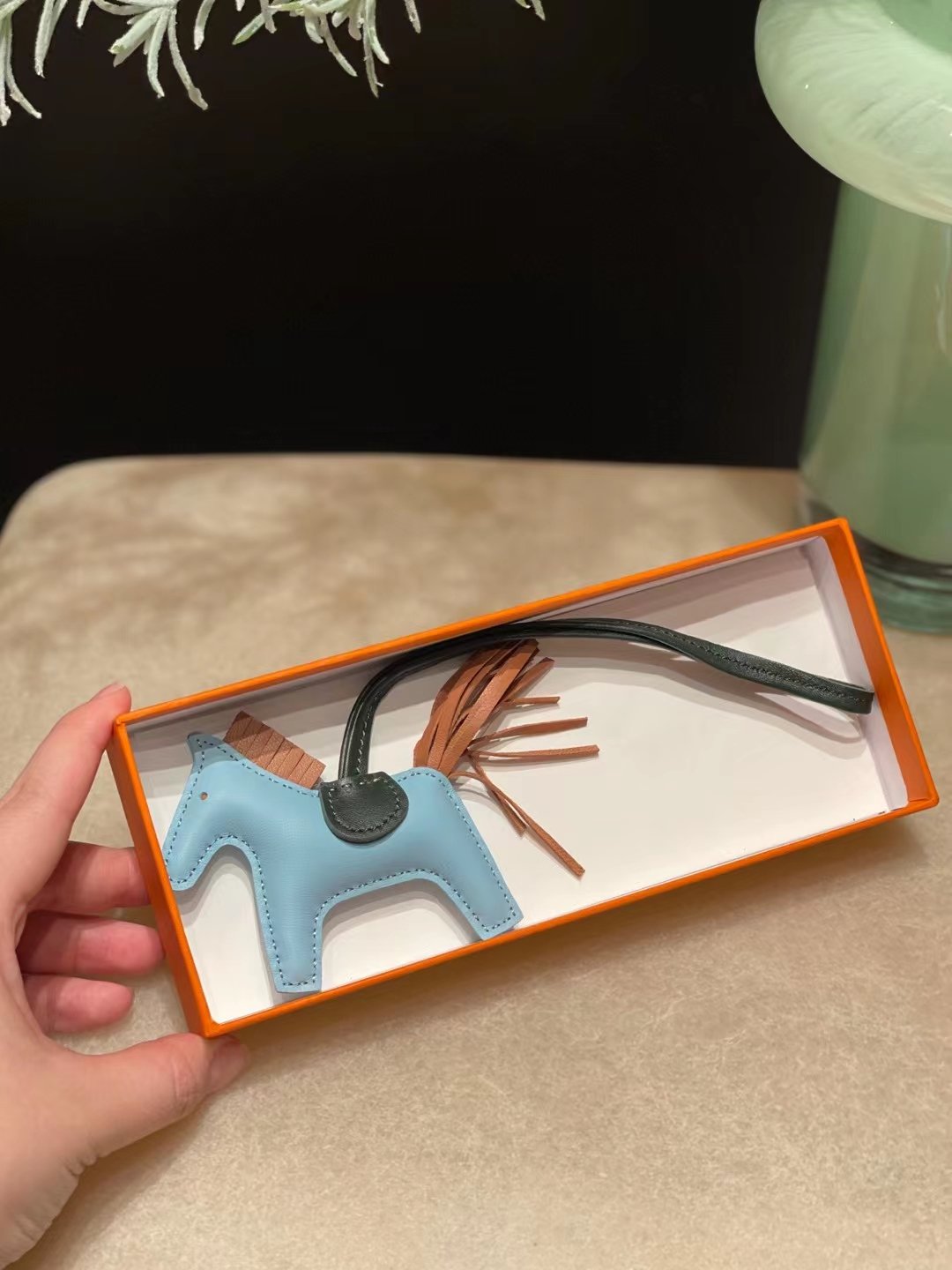Hermes Rodeo PM Charm Milo Lambskin in Bleu Ciel/Alezan/Noir