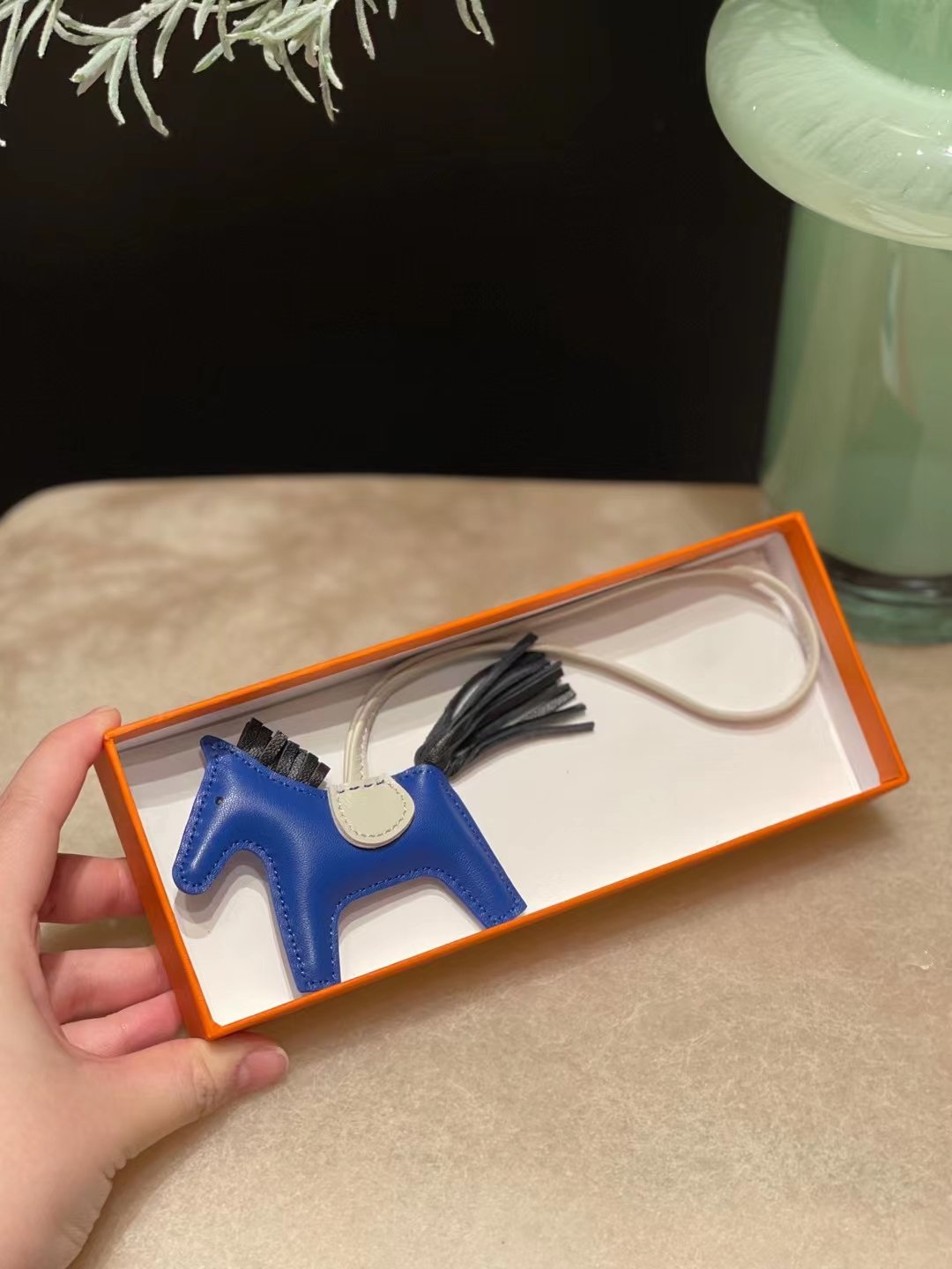 Hermes Rodeo PM Charm Milo Lambskin in Bleu Electrique/Noir/Craie