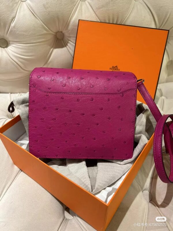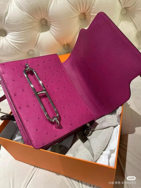 Hermes Roulis bag in Ostrich leather in Purple color with silver hardware.