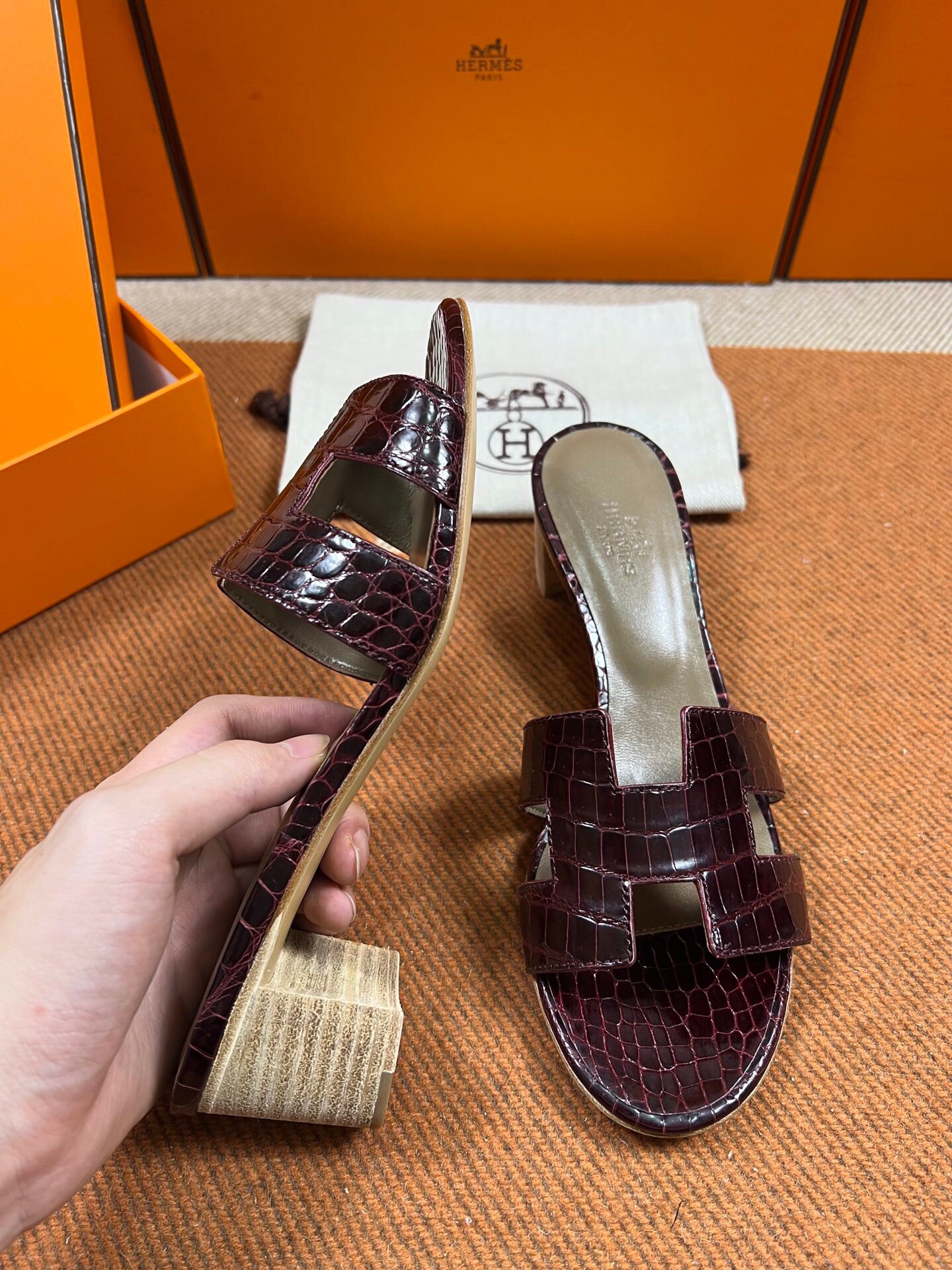 Hermes Oasis Sandals in Croco (Fully Handmade)