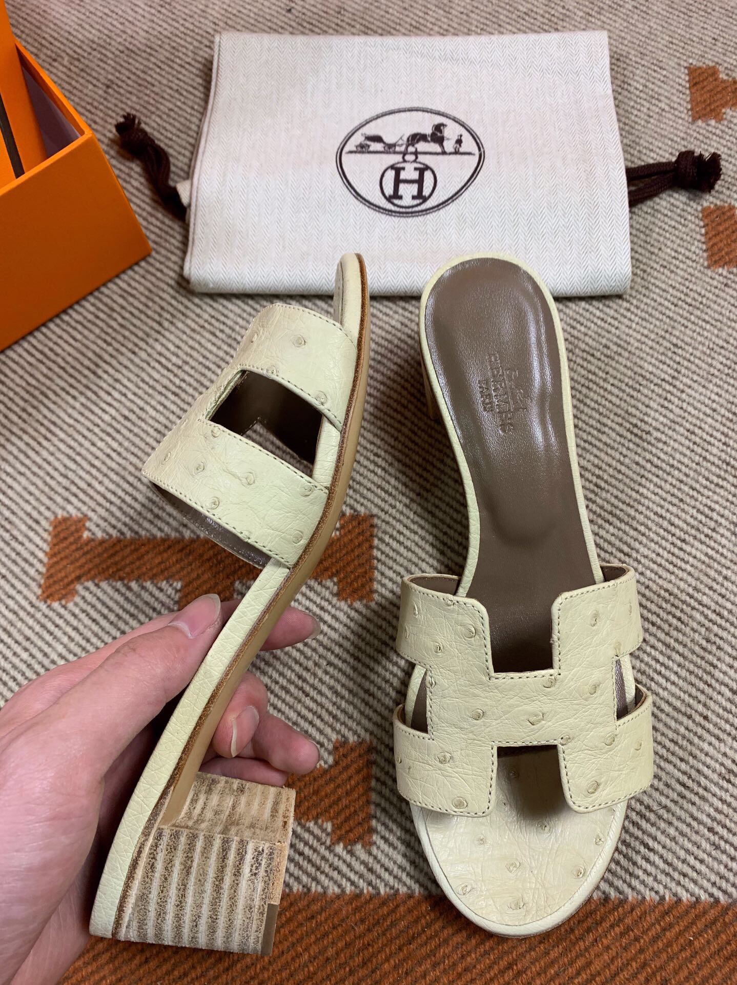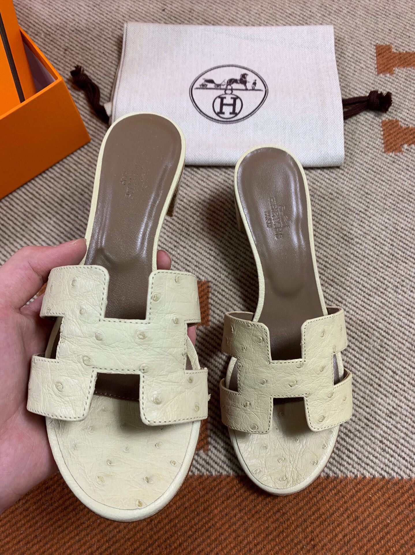 Hermes Oasis Sandals in Ostrich (Fully Handmade)
