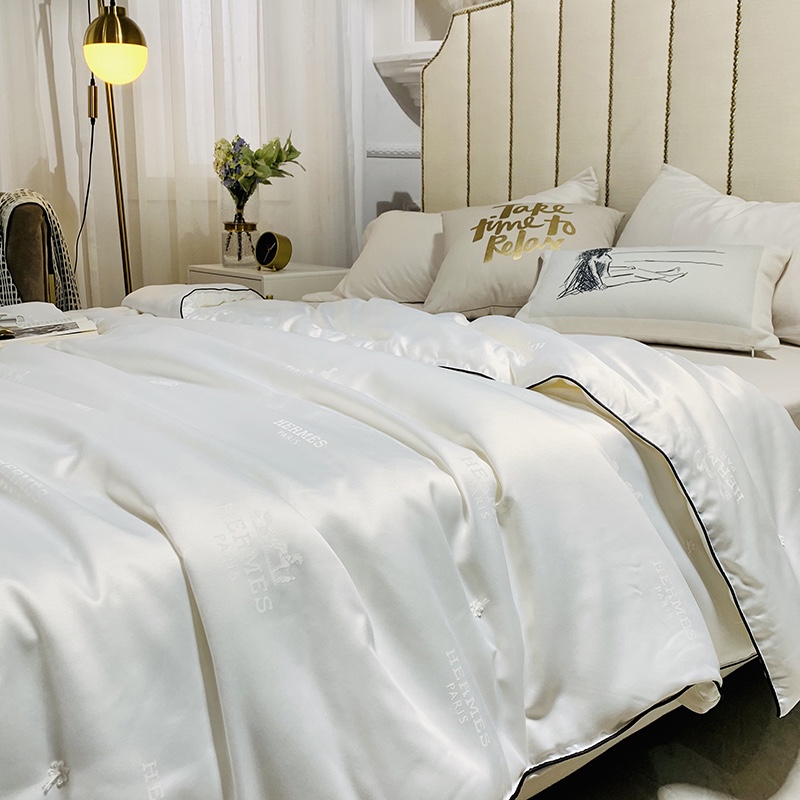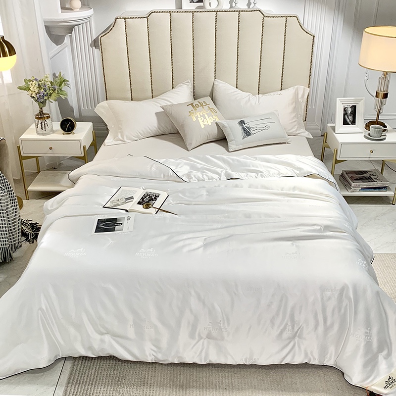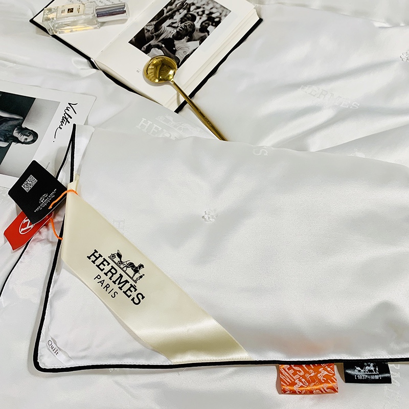 Hermes. HERMES silk quilt️ [Craftsmanship]: Using hand-pointing craftsmanship, pure hand-drawing, highlighting the quality and not running out of wire. Black rolling rope edging, strong color impact, strong three-dimensional sense, highlighting the brand’s sense of luxury. [Fabric]: Special LV80 Tencel jacquard fabric [Filling]: 70% silk+30% kapok [Size]: 200*230/220*240 [Weight]: 3.5kg/4kg
