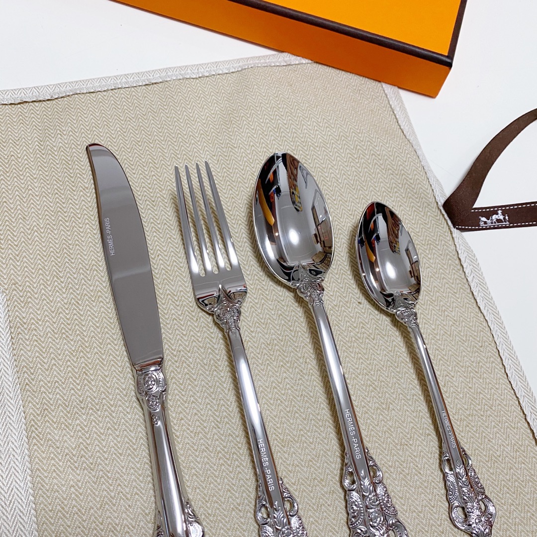 Cutlery and Fork 4-Piece Set |𝐇𝐞𝐫𝐦𝐞𝐬 Imported 304 stainless steel tableware Solo set