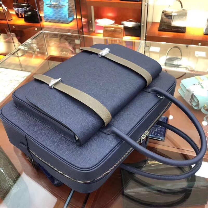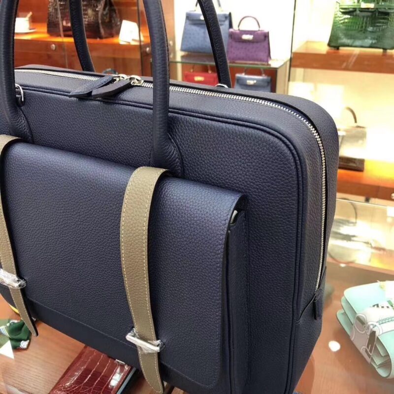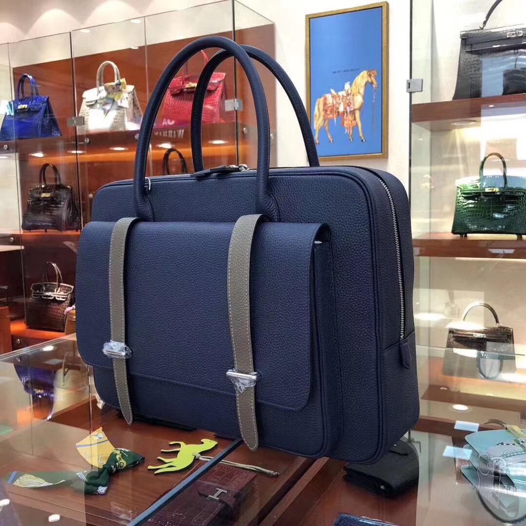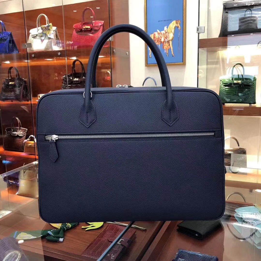 Hermes Steve Briefcase in Bleu Nuit Togo for Man