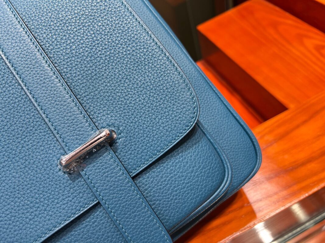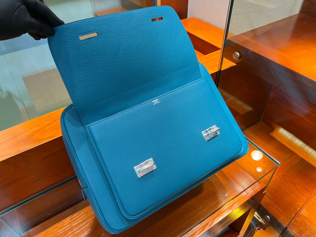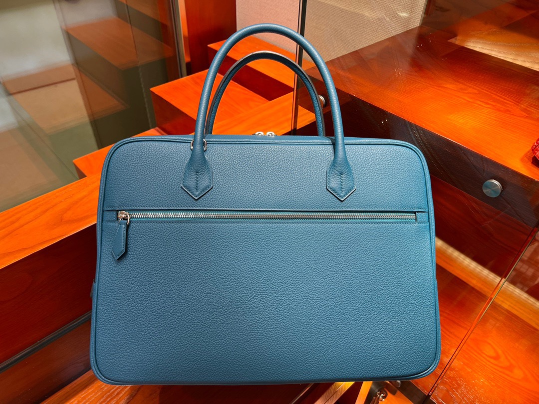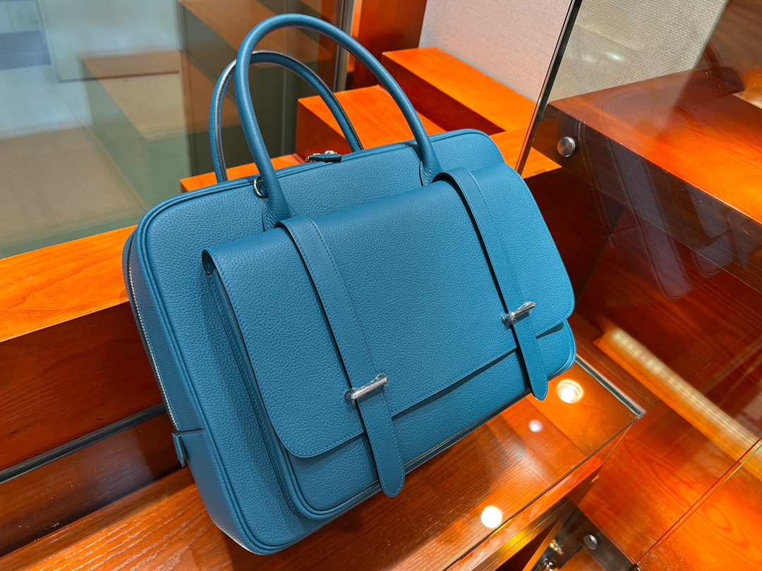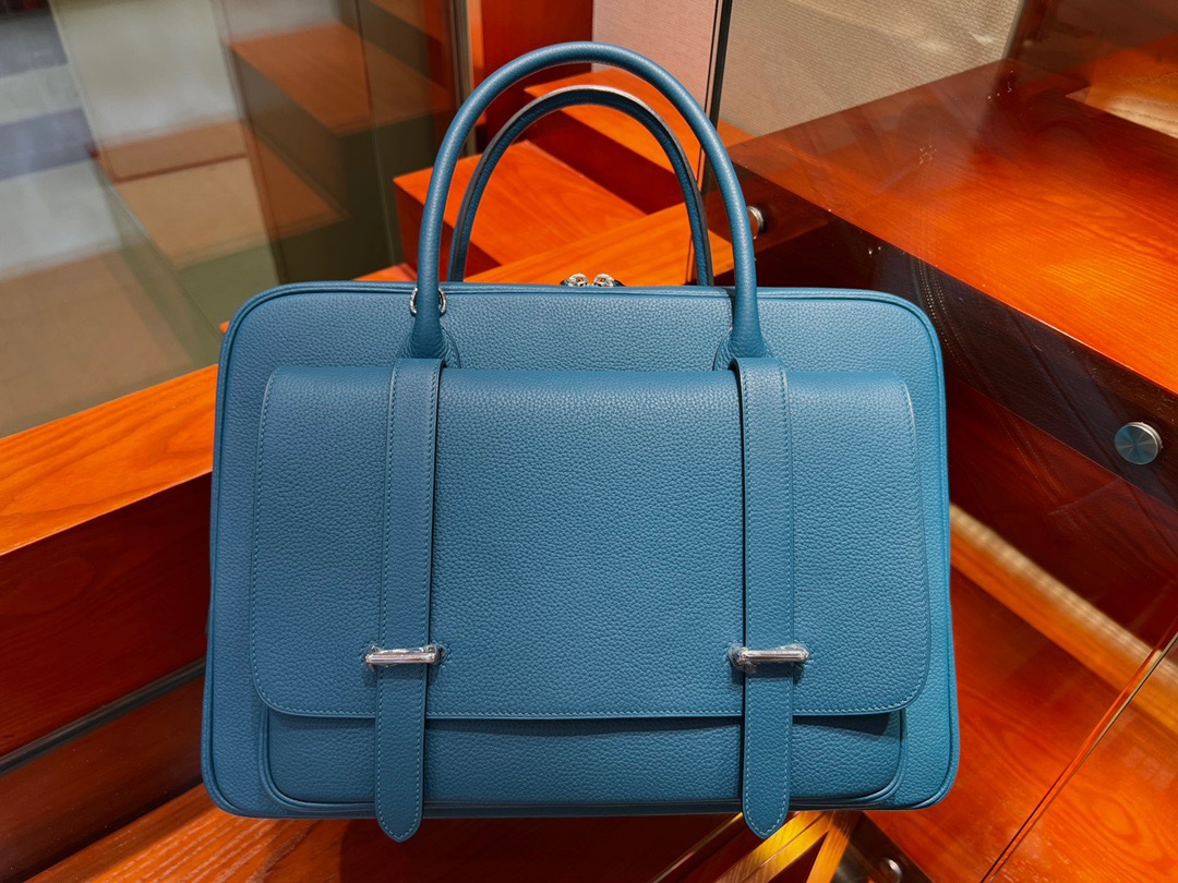Hermes Steve Briefcase in Blue Izmir Clemence for Man
