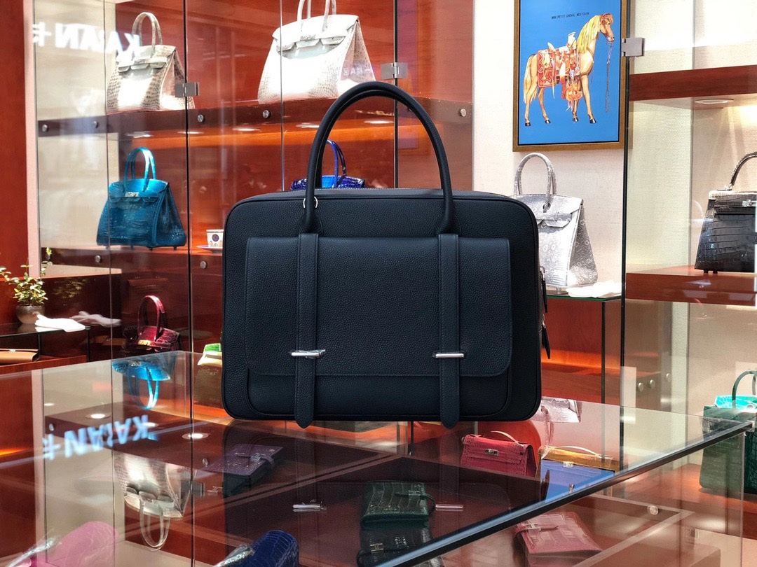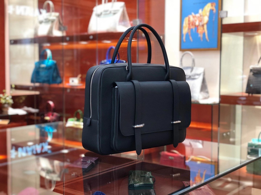 Hermes Steve Briefcase in Noir Togo for Man