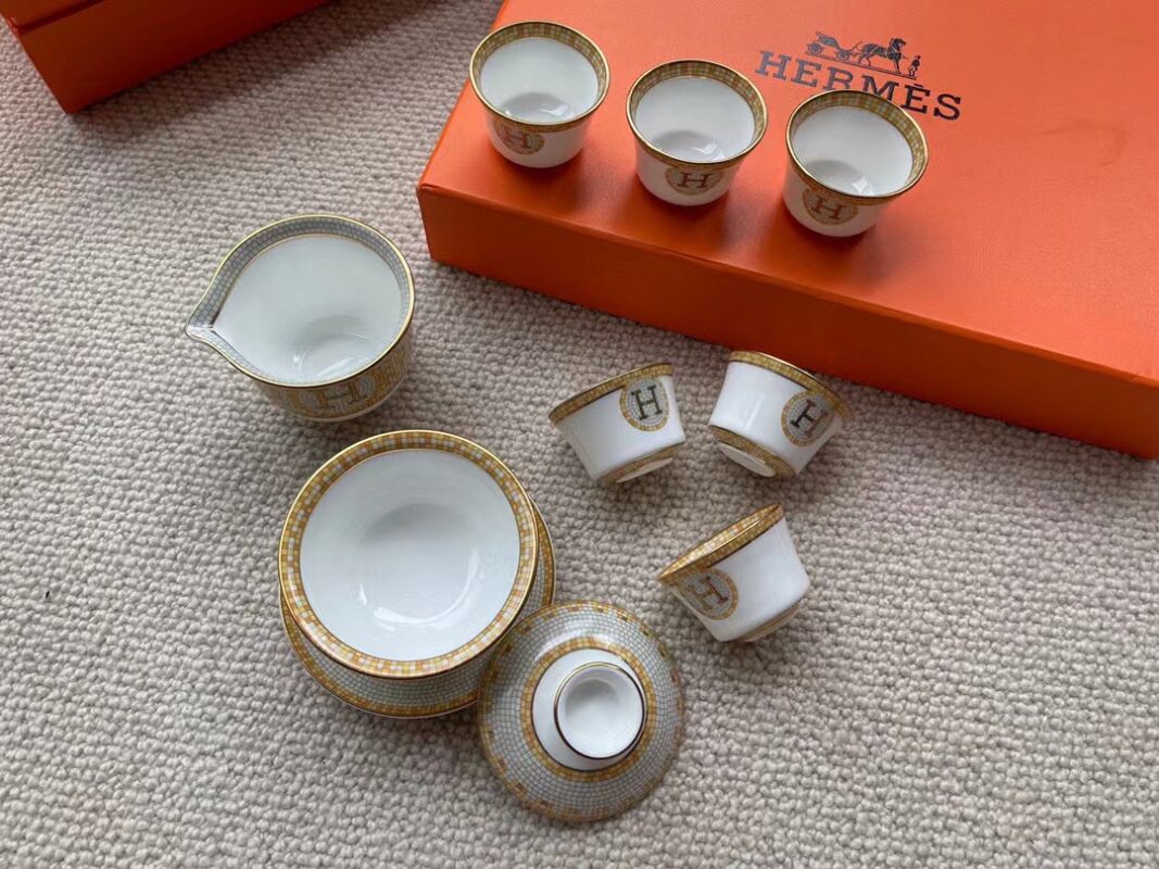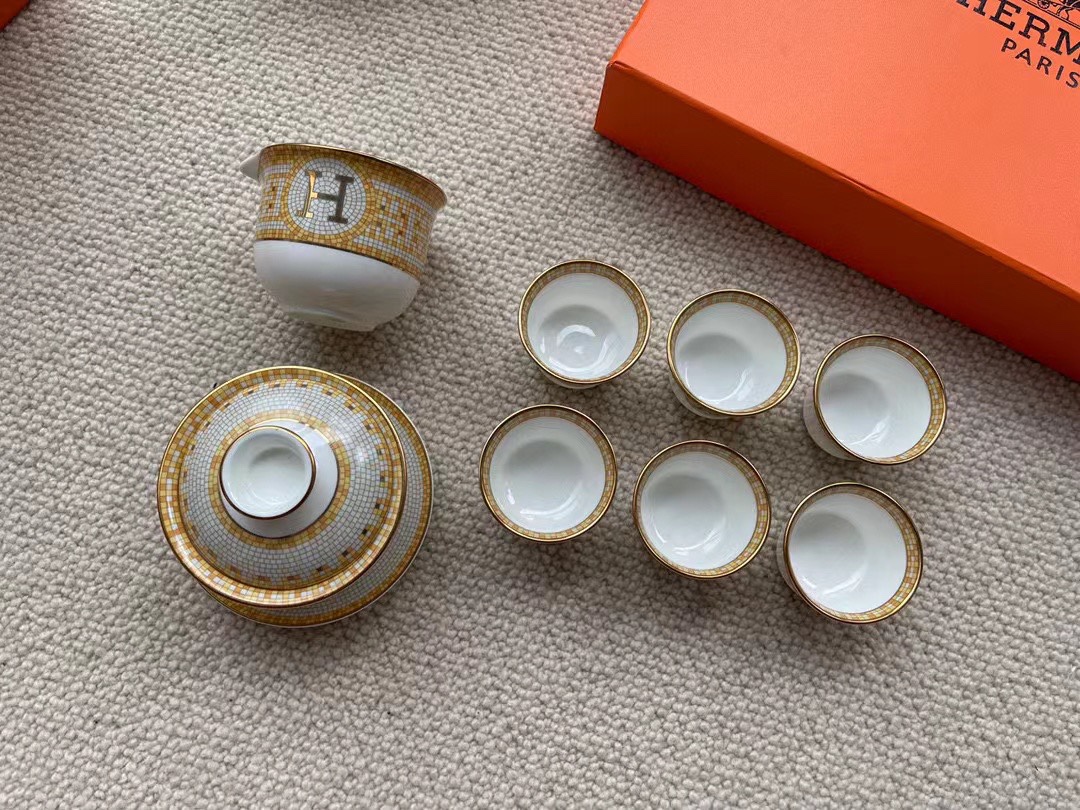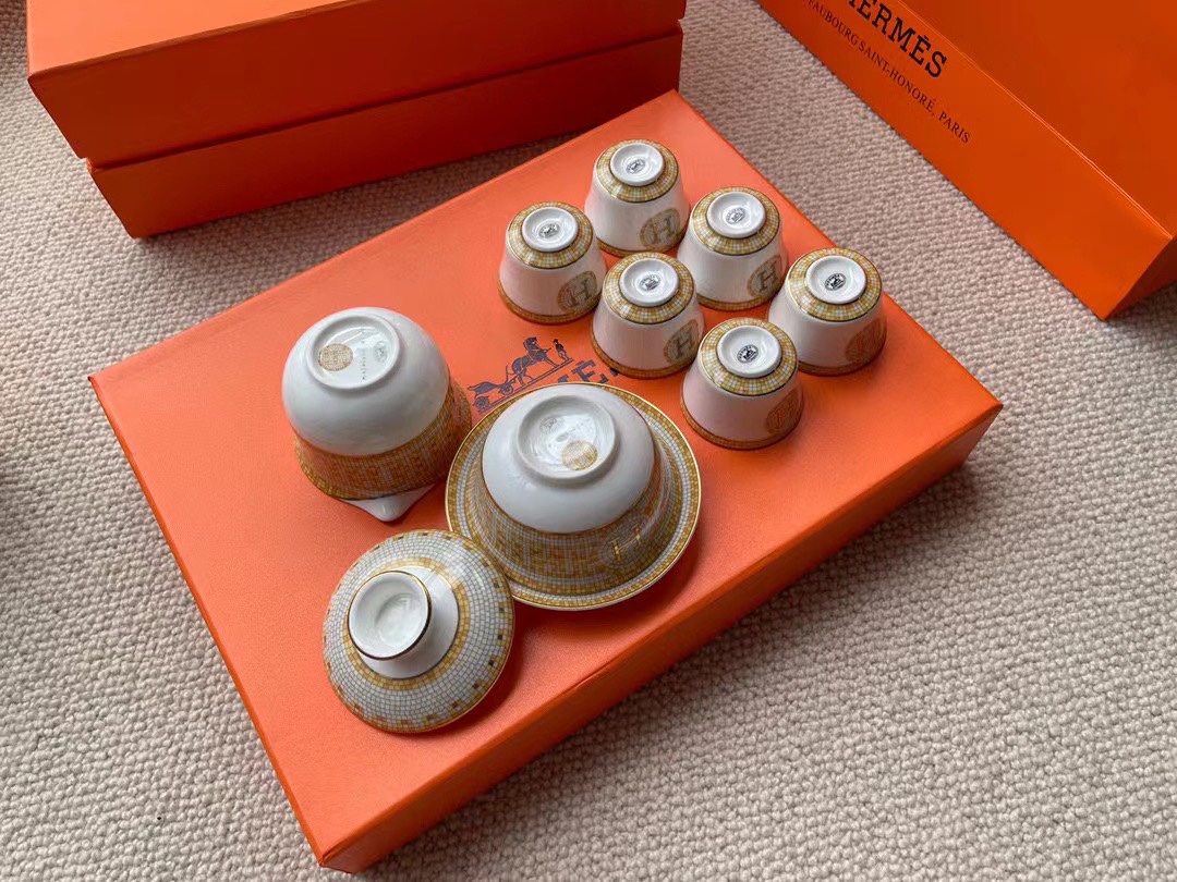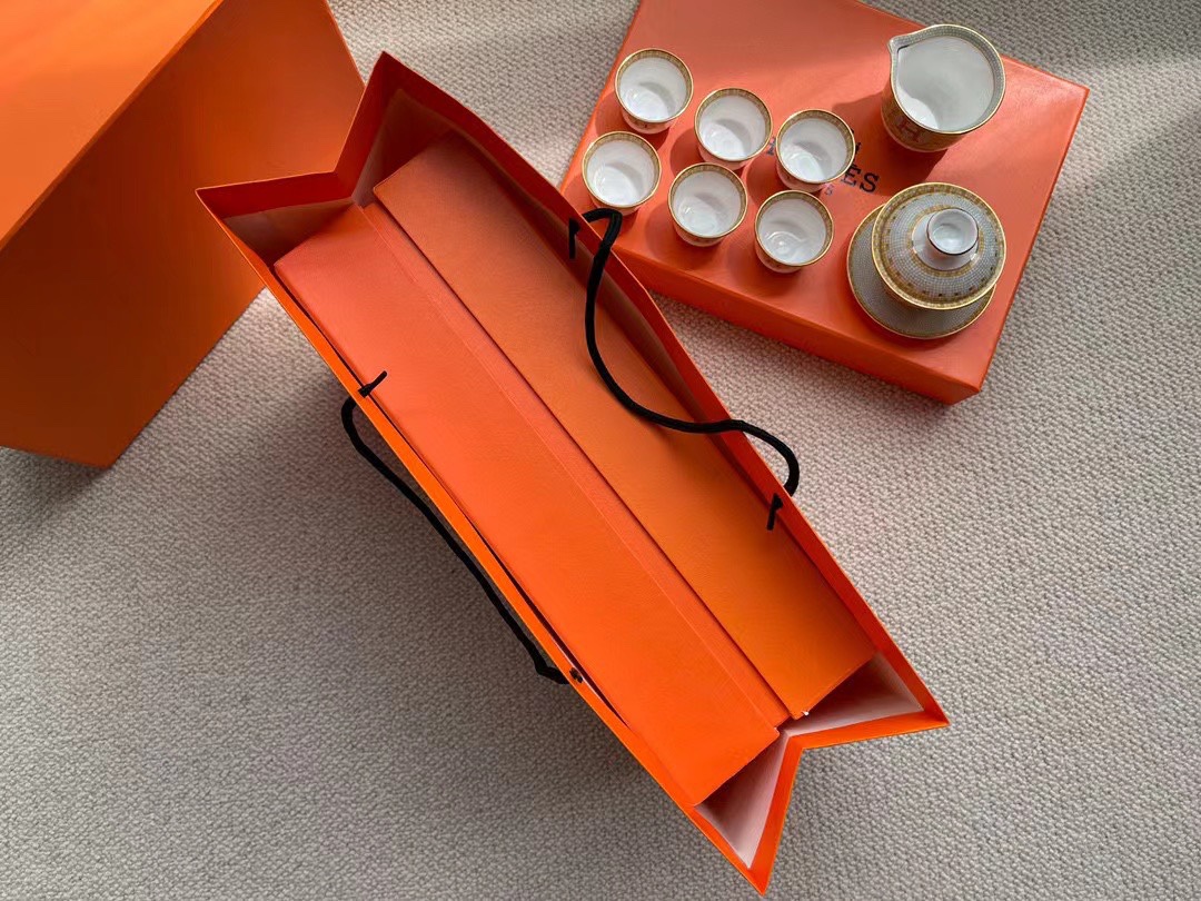 Hermes Gold Mosaic Set Exclusively for Hermès members, the bone china tea set gift box is made of high-quality bone china, and the cup mouth and pattern are made of real gold. A set includes: tea bowls and saucers, justice cups, 6 tea cups.