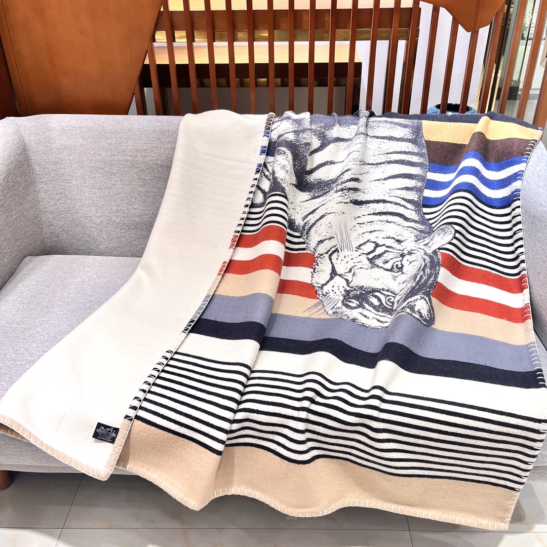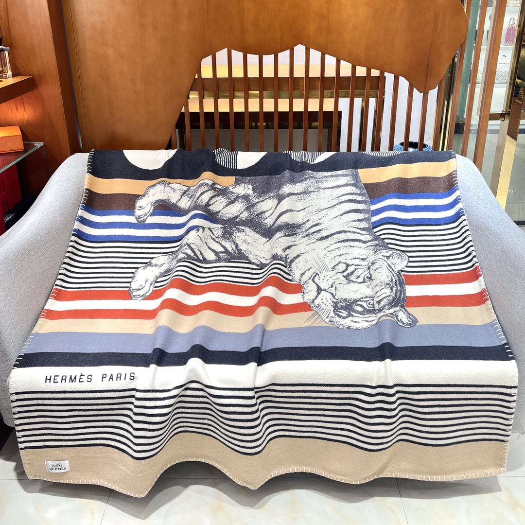 Hermes 2022 new wool blanket Cashmere + wool directly touches the skin without tying at all, and it is classic whenever you take it out. ️A super practical one, it can be used as a decorative blanket for leisure at home, and it can also be concave in the travel car. Decorated with the “Tigre Bayadere” graphic print, it’s comfortable and delicate. Overlock stitch decoration, silk screen printing (14 pieces of silk screen), the printed patterns are delicate and true and opaque, which does not affect the original texture of the blanket at all. Fabric: 90% wool + 10% cashmere Size: 135*170cm Weight: 1500g, the first choice to keep warm in autumn and winter, super thick.