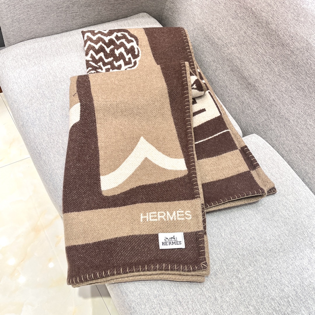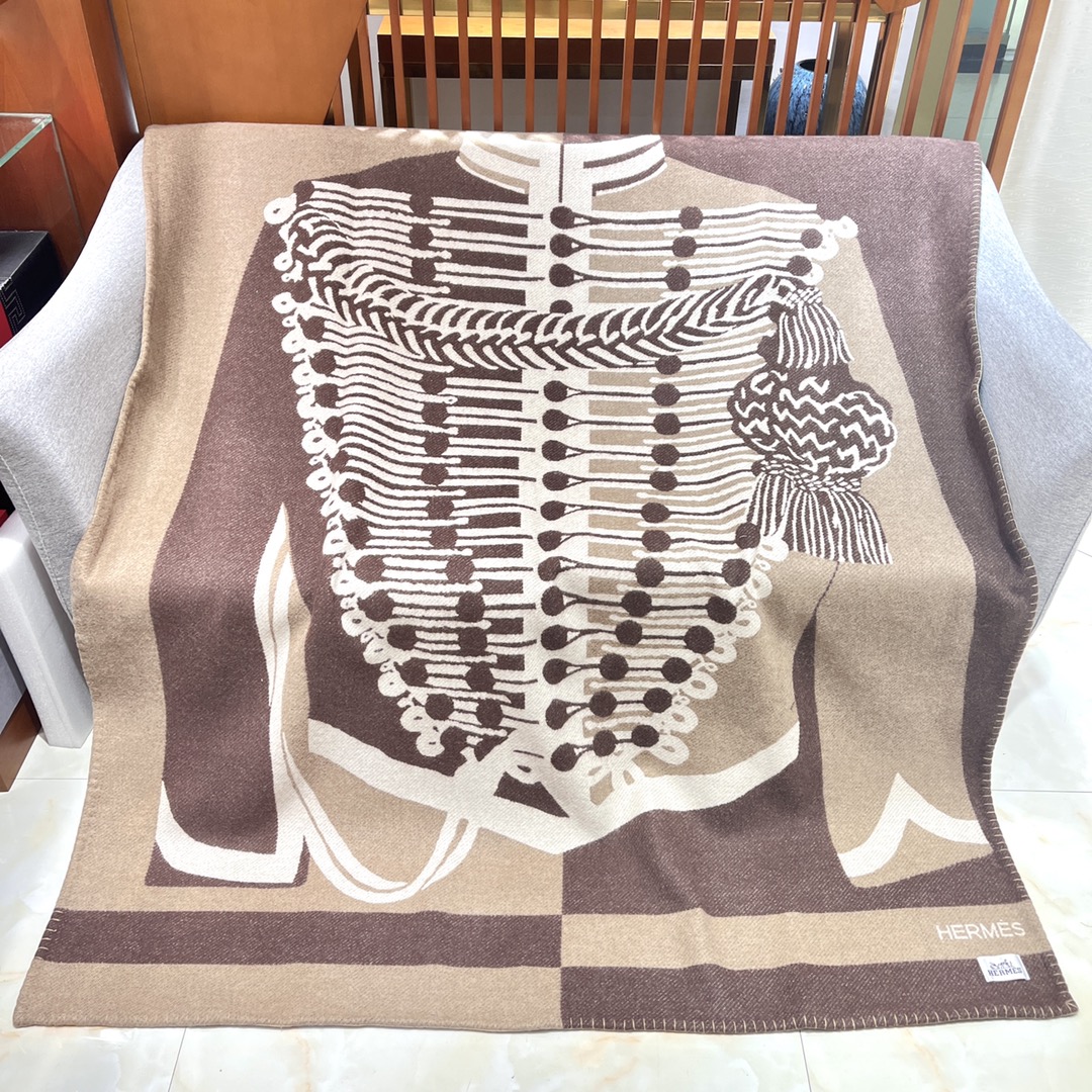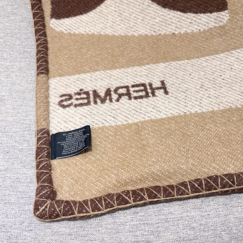 Hermes Wool Blanket This imported dye is used to make it opaque and non-fading. The quality is still soft without suede, and the sewing on both sides will show different colors, covering it on the body as if wearing a battle uniform, giving courage. Fabric: 90% wool + 10% cashmere Size: 135*170cm Gram weight: 1500g