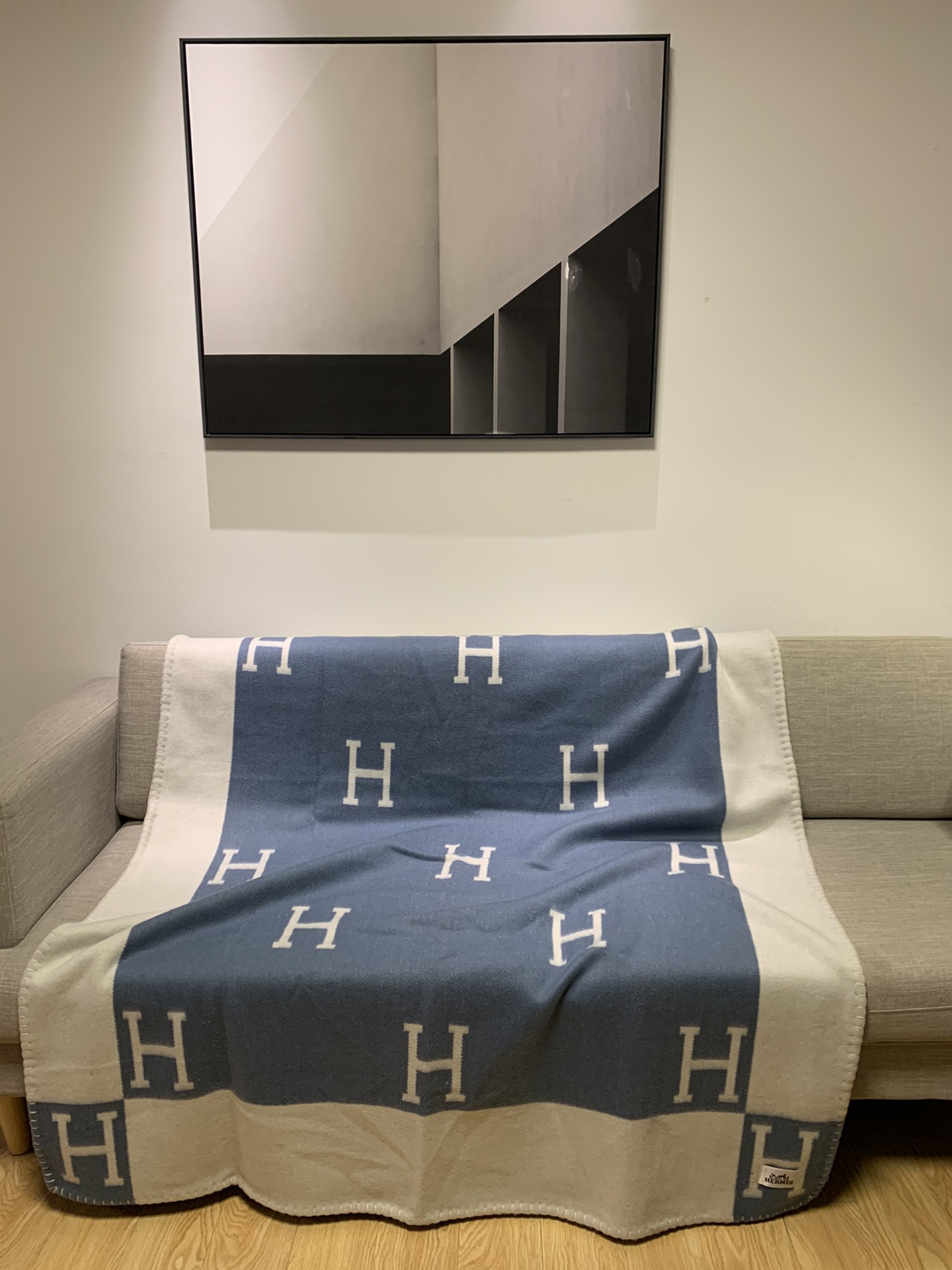 Hermes classic – counter quality Fabric: 90% wool + 10% cashmere Size: 140x170cm Color: denim blue