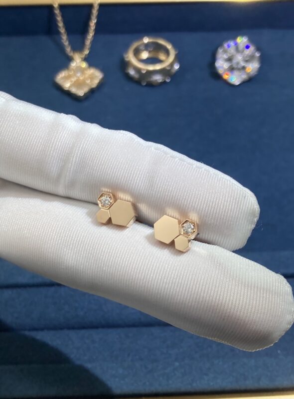 Honeycomb One Diamond Stud Earrings, Rose Gold