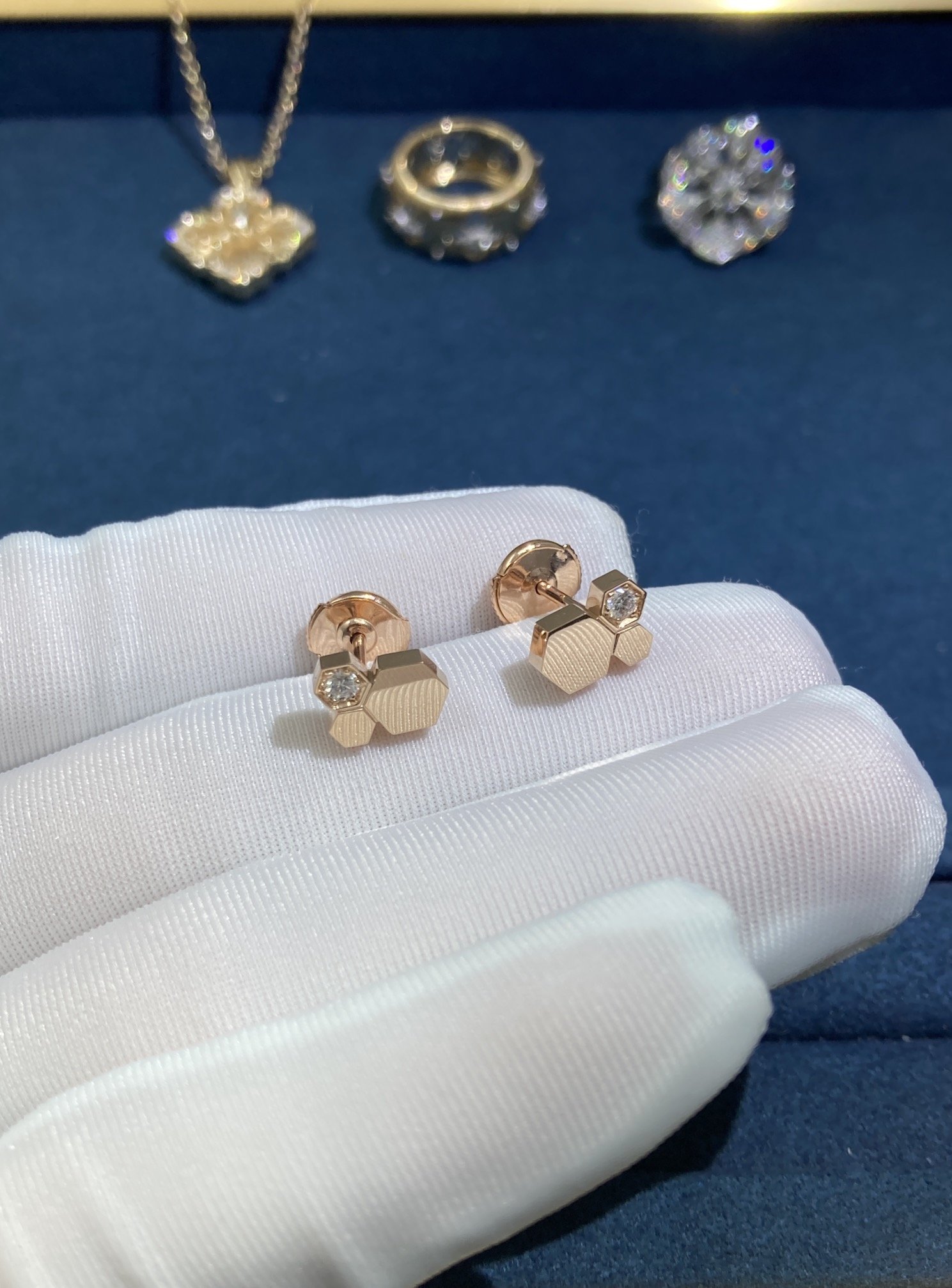 Honeycomb One Diamond Stud Earrings, Rose Gold