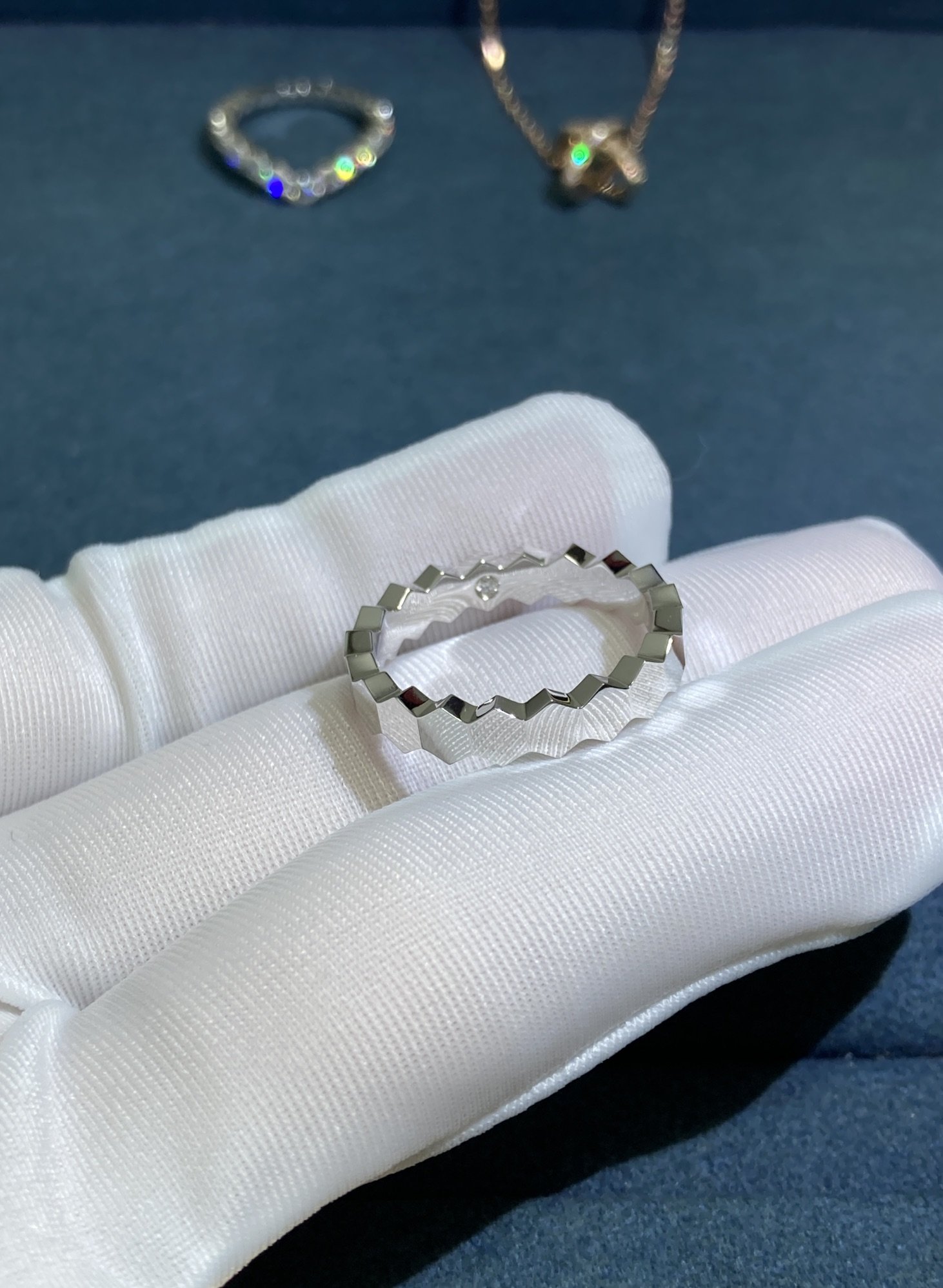 The metal used in pieces of jewelry are often a lustrous yellow or white gold, which is expertly polished to a mirror-like finish. The precious stones are carefully selected by our masters and set in a precise manner, showing off their color, clarity, and brilliance to their full potential.