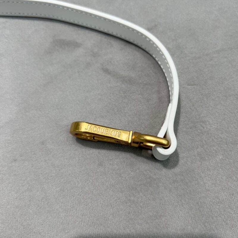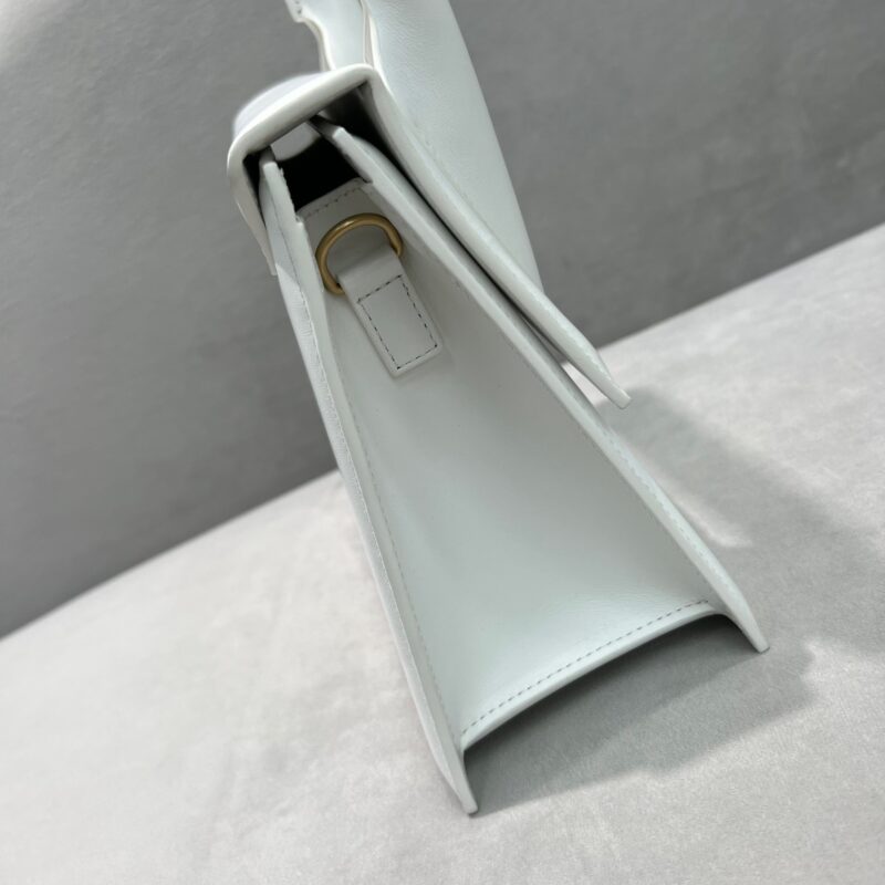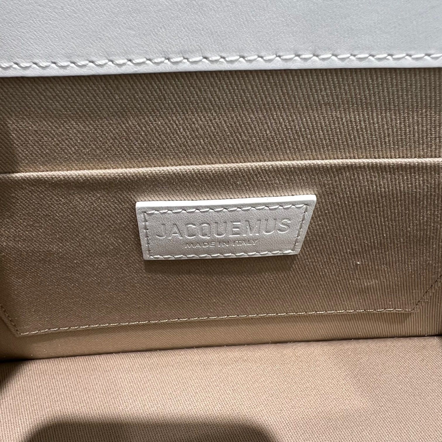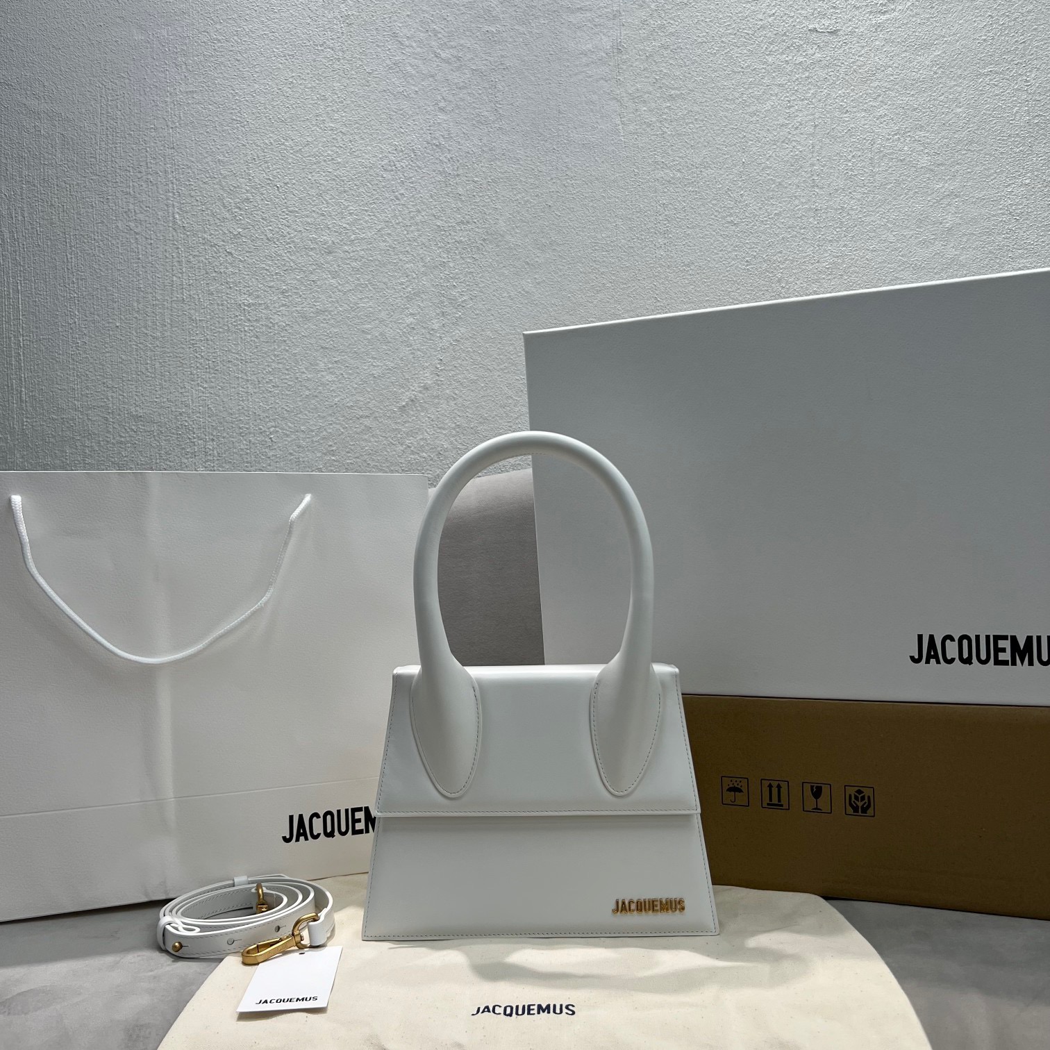 Large white Jacquemus—one of the hottest bags Known as the most popular retro handbag, with its stiff body, high-purity colors, and the eye-catching golden LOGO on the bag. 2020: 24x18x10cm