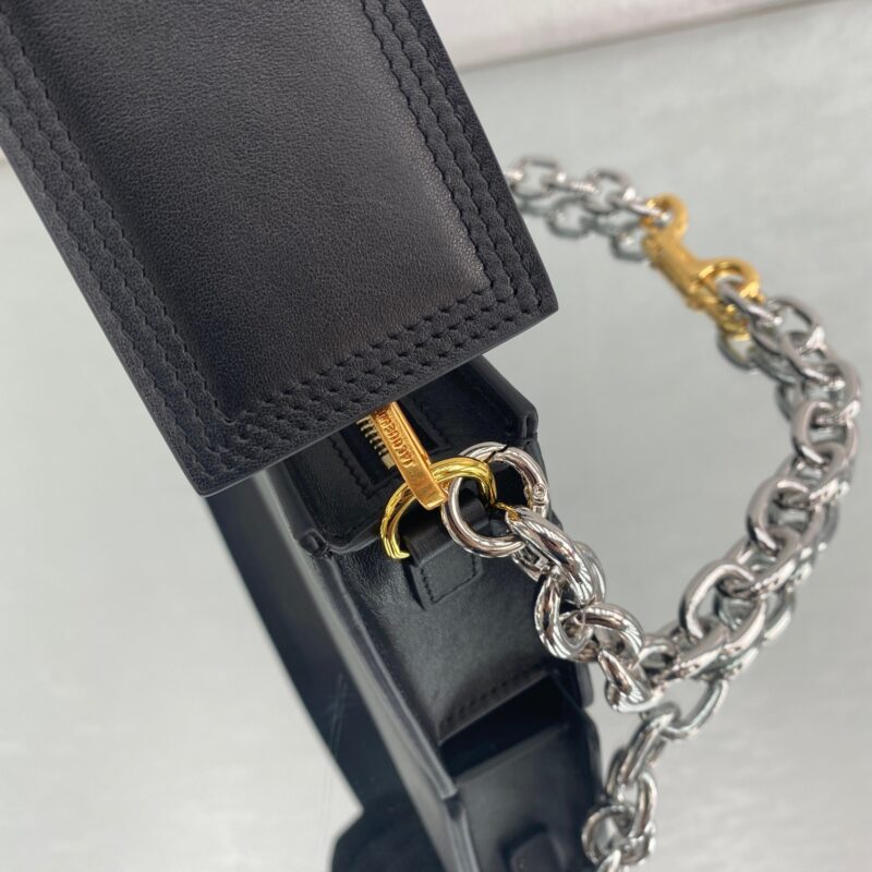 Full Leather Black Jacquemu Le Sac Ciuciu series chain crossbody/ hand bag Using polished leather, detachable chain link shoulder strap, lobster clasp and spring ring buckle closure, with its rigid body, high-purity color, and eye-catching golden LOGO on the package. One of the world’s best “belts” “Queen of goods” are all carrying the key to showing the French casual style. Style number 2043 Size section 30x height 11×4.5cm