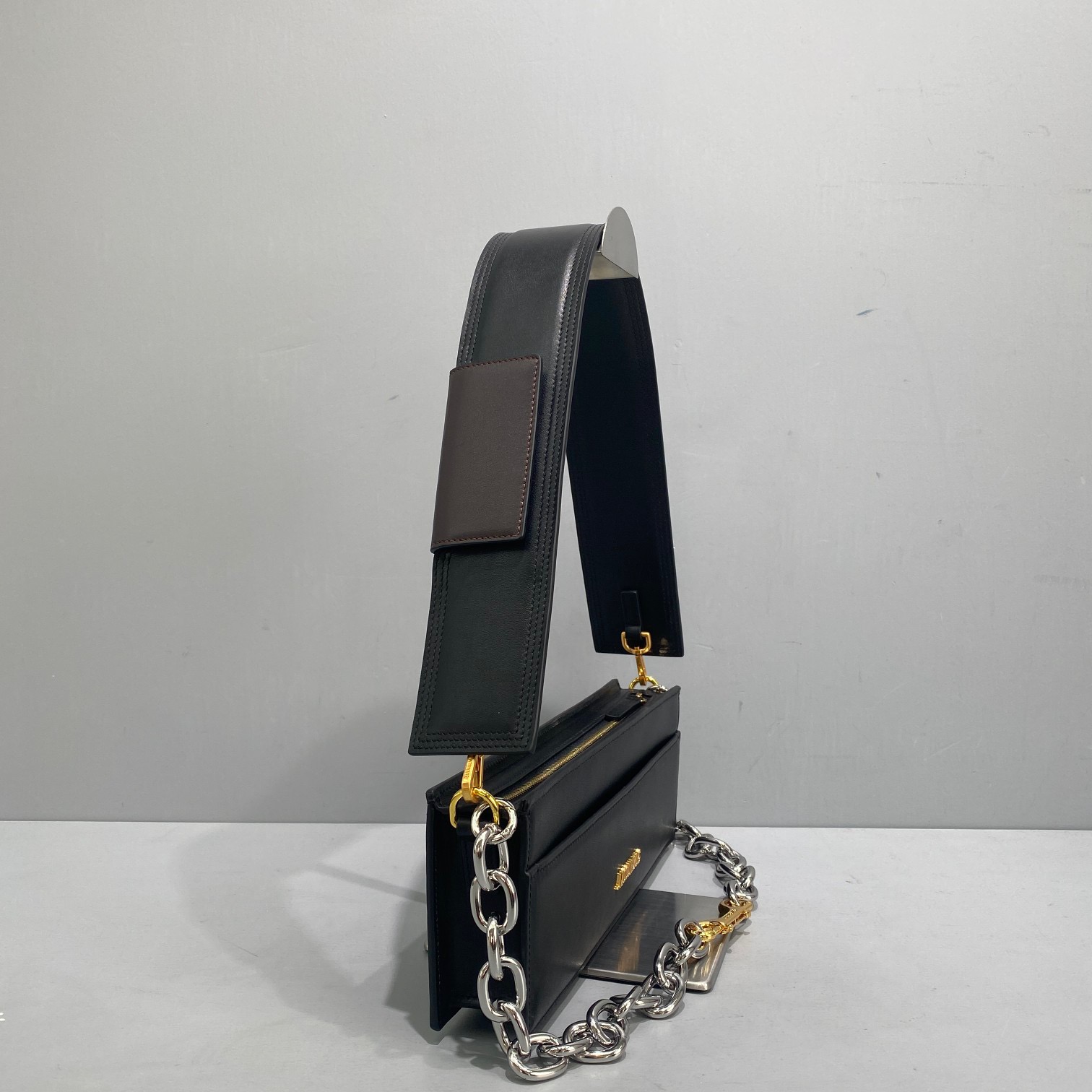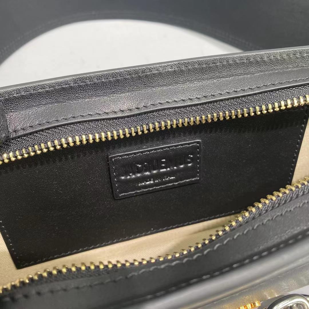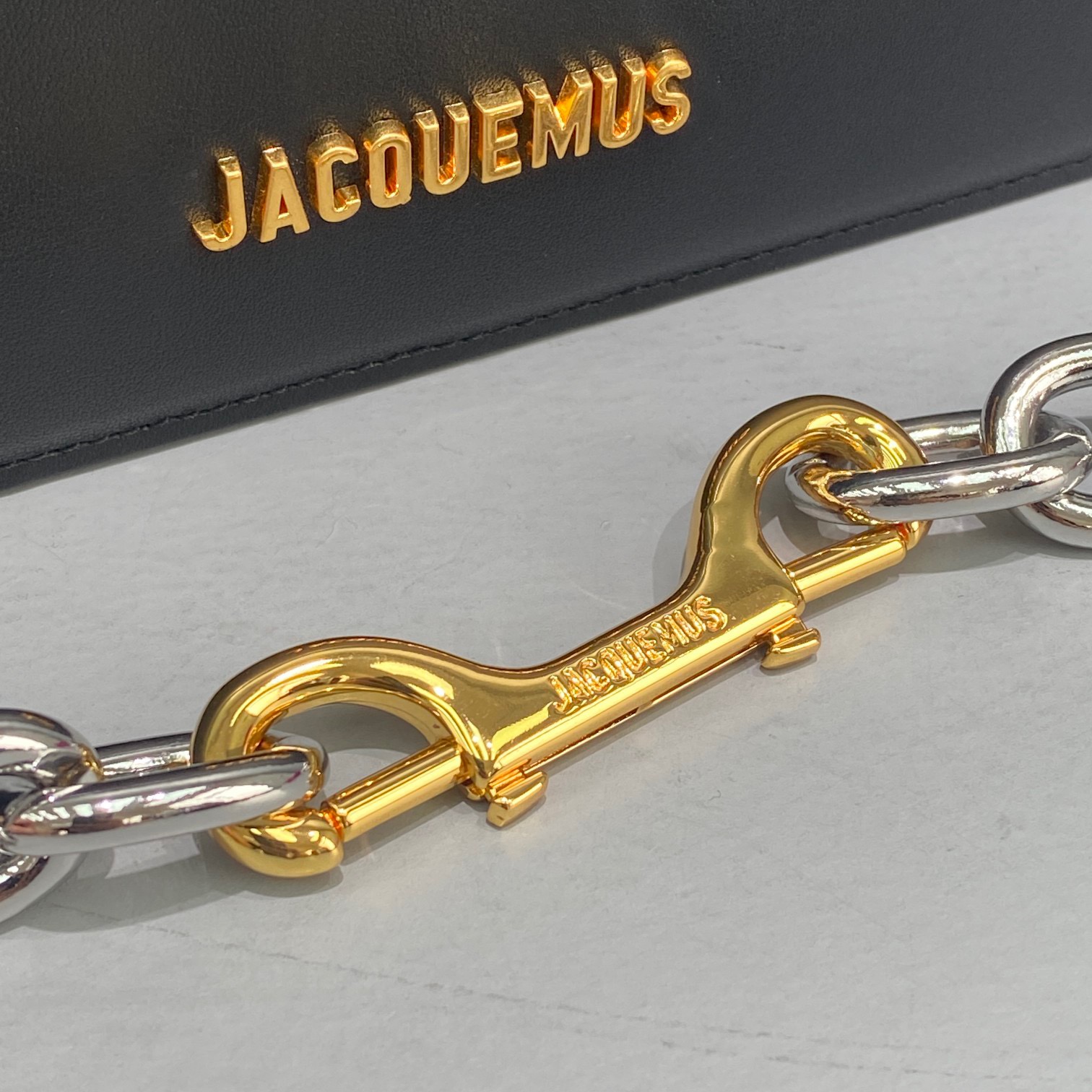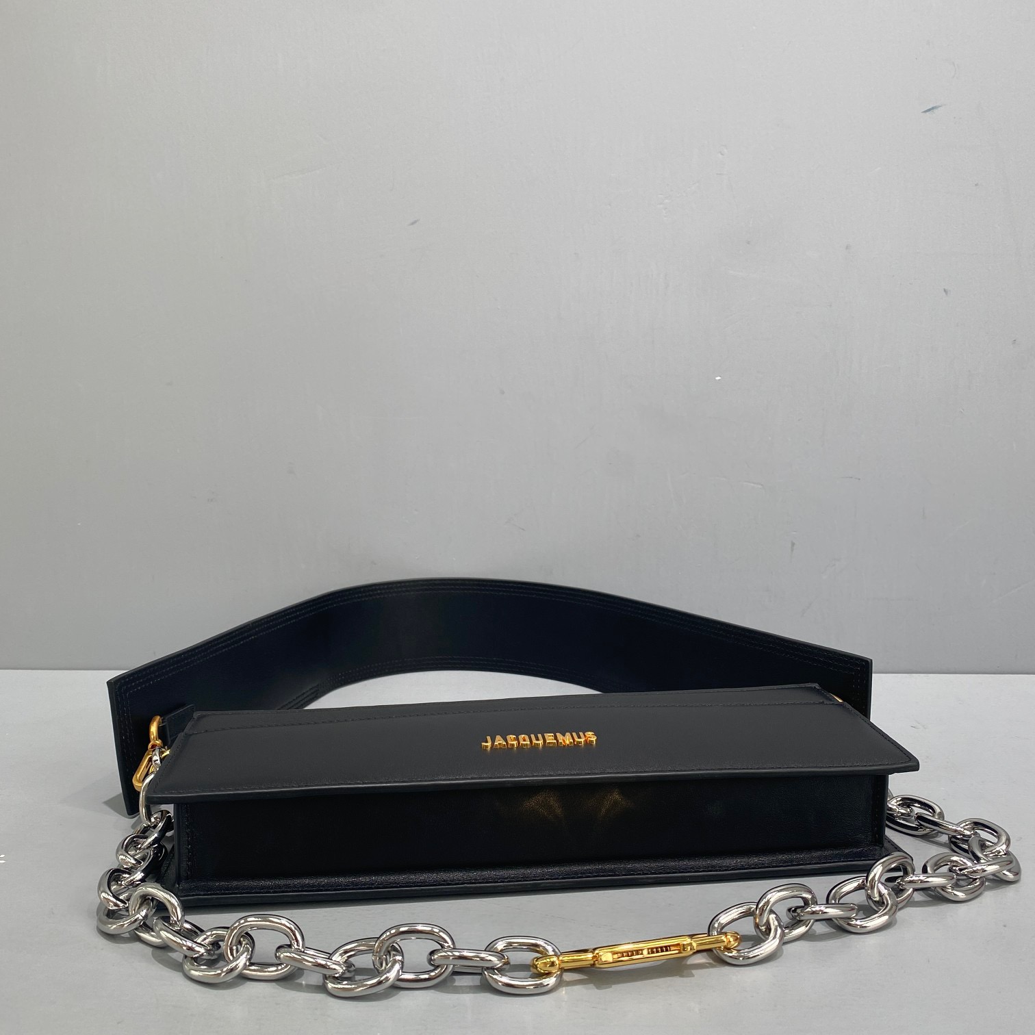 Full Leather Black Jacquemu Le Sac Ciuciu series chain crossbody / hand bag Using polished leather, detachable chain link shoulder strap, lobster clasp and spring ring buckle closure, with its rigid body, high-purity color, and eye-catching golden LOGO on the package. One of the world’s best “belts” “Queen of goods” are all carrying the key to showing the French casual style. Style number 2043 Size section 30x height 11×4.5cm