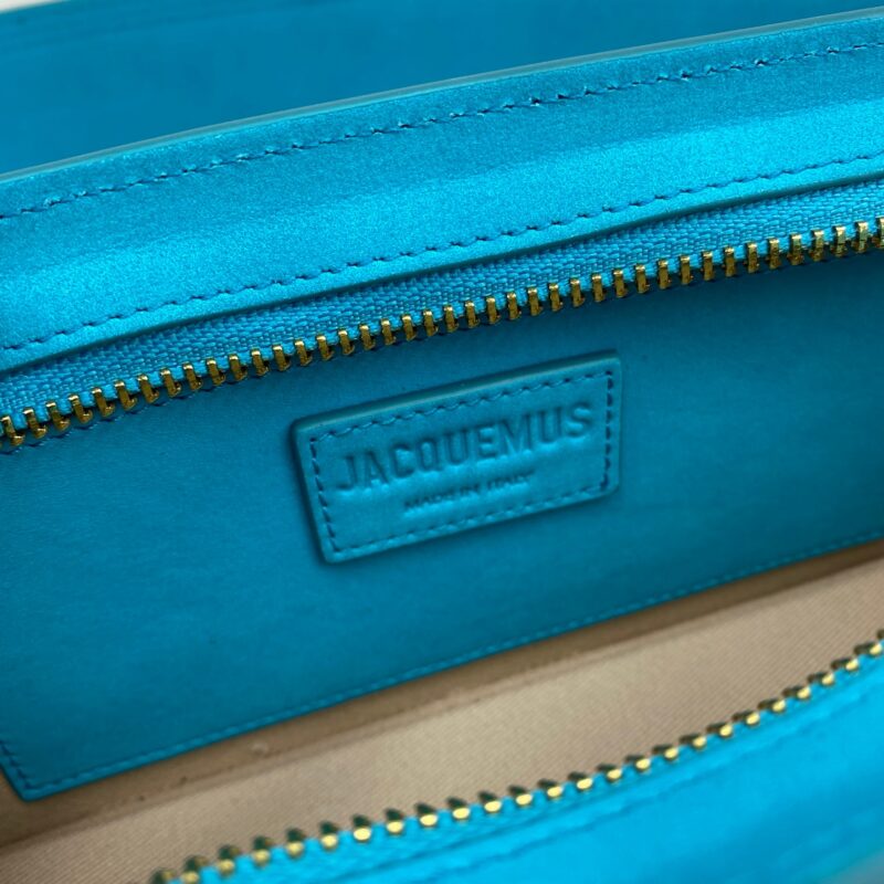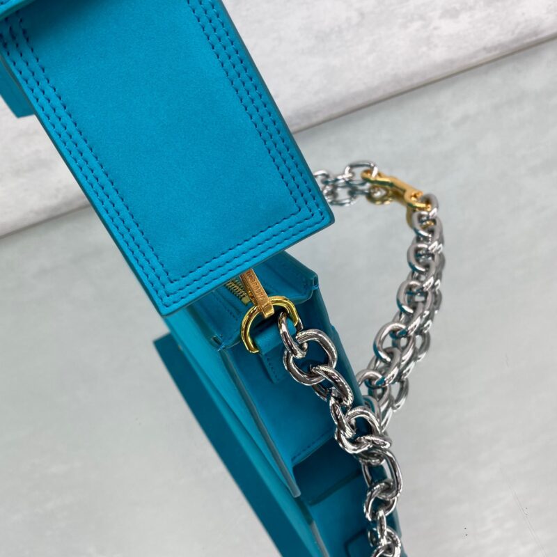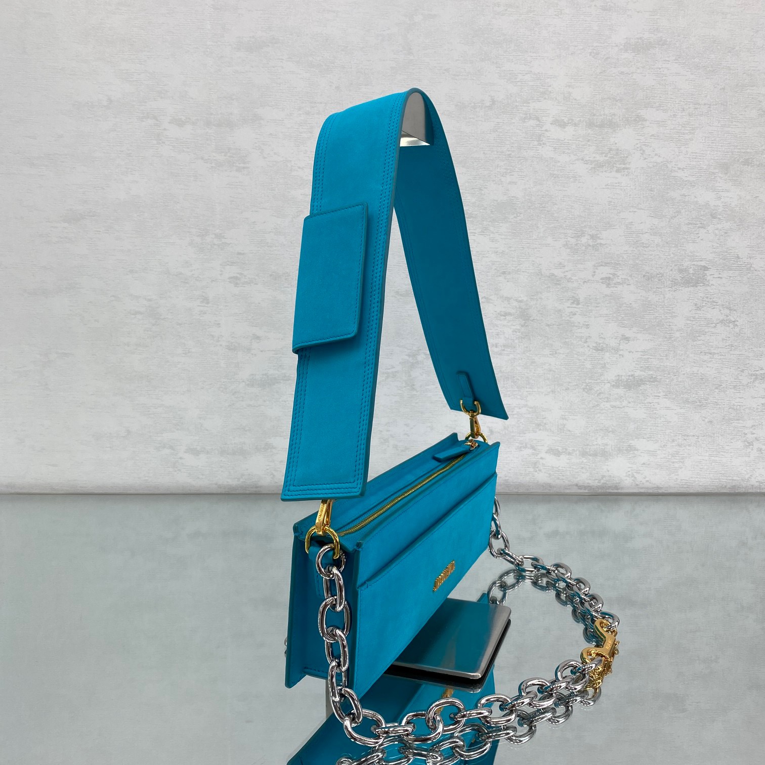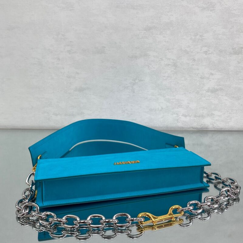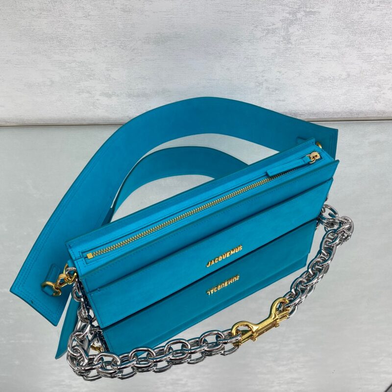 Frosted Blue Jacquemu Le Sac Ciuciu series chain crossbody/ hand bag Using polished leather, detachable chain link shoulder strap, lobster clasp and spring ring buckle closure, with its rigid body, high-purity color, and eye-catching golden LOGO on the package. One of the world’s best “belts” “Queen of goods” are all carrying the key to showing the French casual style. Style number 2043 Size section 30x height 11×4.5cm